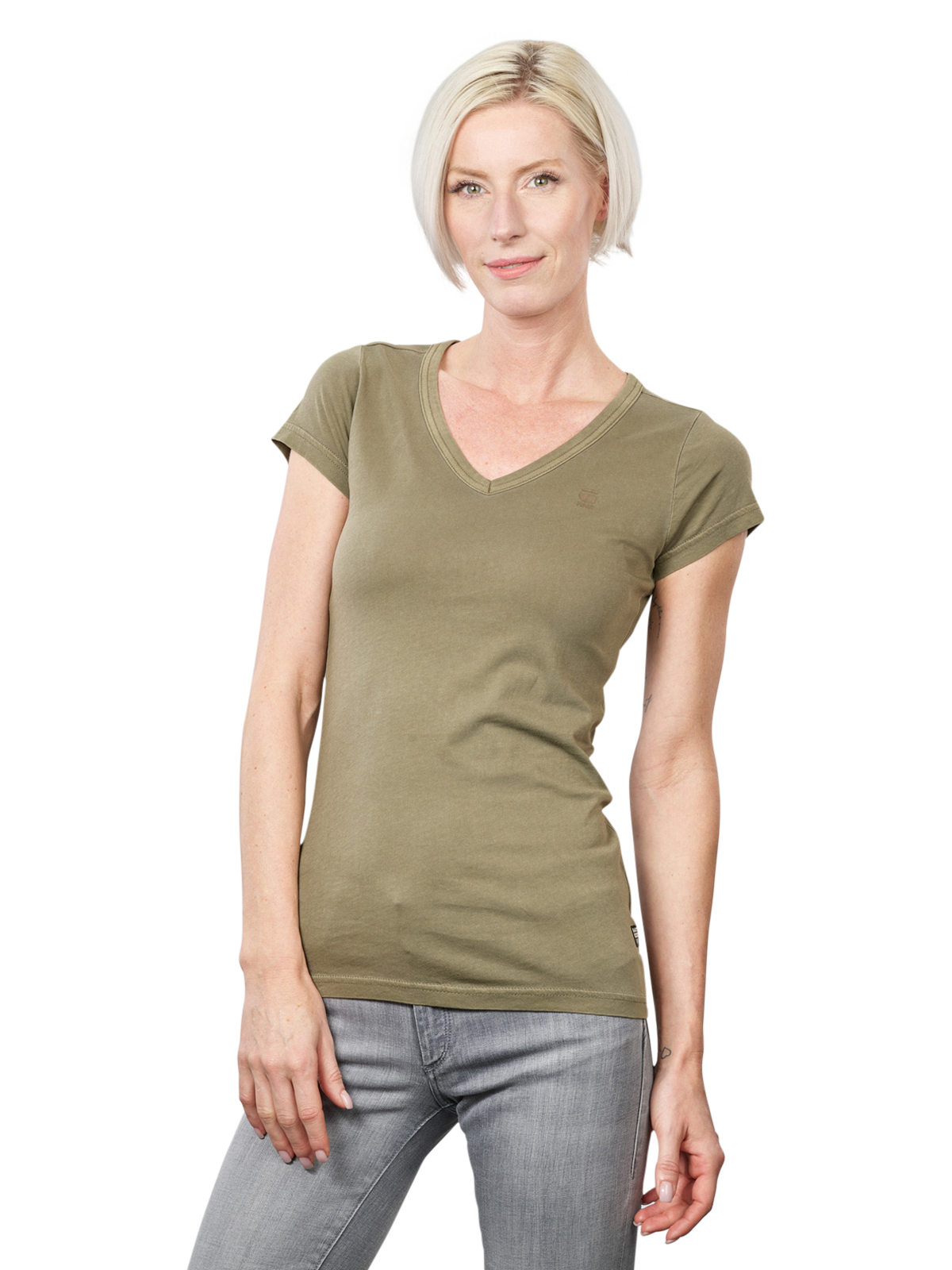 Das Short Sleeve Eyben Damen T-Shirt mit V-Neck von G-Star, besticht durch den lässigen Casual Stil. In Slim Fit Ausführung und aus nachhaltiger weicher 100% Bio-Baumwolle hergestellt, gewährleistet das hochwertig gearbeitete G-Star T-Shirt ein super bequemes Tragegefühl. Eine Uni-Musterung im Farbton Shamrock sowie der körperbetonte Schnitt ergänzen den modernen Look des Eyben T-Shirts. Im Schonwaschgang mit 30°C Wäsche ist das V-Neck Shirt leicht zu pflegen.