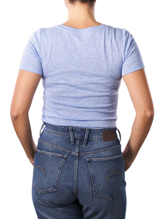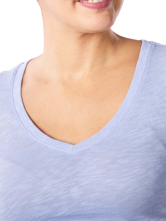 Frühlingfrisch kommt dieses hochwertige T-Shirt von Marc O'Polo daher. Es begeistert ist einem lichten Blauton und besteht aus reiner, softer Baumwolle. Mit körpernaher Passform und tiefem V-Ausschnitt passt es perfekt über leichte Blazer, Jeansjacken und Hemden. Sein feines Material lässt Sie auch bei hohen Temperaturen nicht Schwitzen.