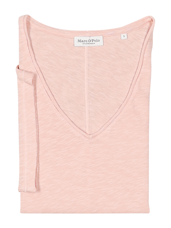 Entdecken Sie das Marc O'Polo V-Neck T-Shirt in der sanften Chalky Peach Farbe, perfekt für stilbewusste Frauen. Dieses T-Shirt verbindet Komfort und Eleganz und überzeugt durch seinen V-Ausschnitt. Hergestellt aus 100% hochwertiger Baumwolle, garantiert es ein angenehmes Tragegefühl und entspricht den Richtlinien des Global Organic Textile Standard (GOTS). Pflegeleicht in der Maschine waschbar bei 30°C im Schonwaschgang, ist es der ideale Begleiter für den Alltag oder besondere Anlässe.