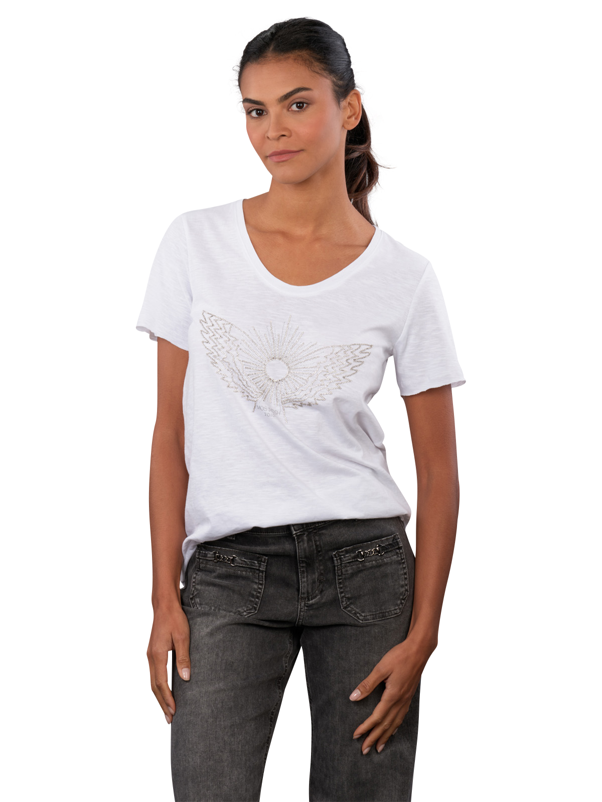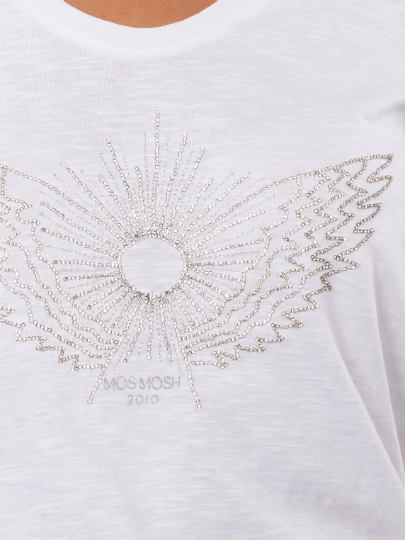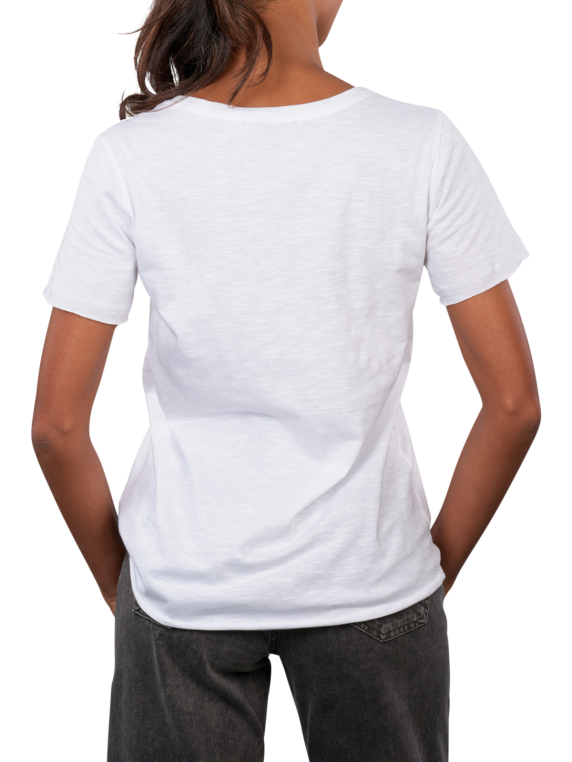 Das Mos Mosh Gethi T-Shirt Glam White bietet einen Rundhals-V-Ausschnitt und besteht aus 100% Baumwolle. Es ist für die Maschinenwäsche bei 30°C geeignet und sollte nicht gebleicht werden. Dieses T-Shirt kombiniert Komfort mit einem eleganten Look, was es vielseitig für verschiedene Anlässe macht. Die schlichte Farbgebung in Weiss ermöglicht einfache Kombinationen mit anderen Kleidungsstücken.