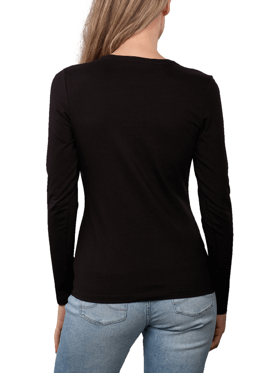 Das Opus Smilla T-Shirt Longsleeve Slim Fit in Schwarz bietet einen Rundhalsausschnitt und eine enganliegende Passform. Es besteht aus 94% Baumwolle und 6% Elasthan, was für einen angenehmen Tragekomfort sorgt. Das T-Shirt kann bei 30°C im Schonwaschgang gewaschen werden und ist pflegeleicht. Es eignet sich für verschiedene Anlässe und lässt sich vielseitig kombinieren.