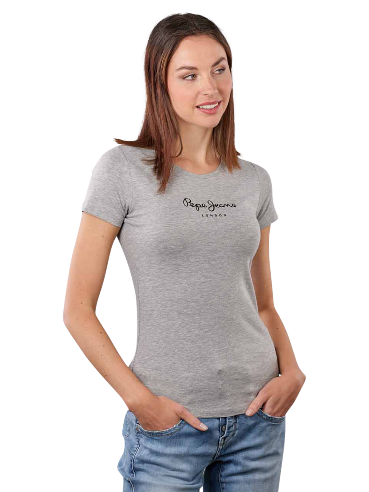 Diese klassische Pepe Jeans Crew Neck Virginia T-Shirt Short Sleeve für Damen mit kurzem Arm und Rundhalsausschnitt ist wahlweise in den Farben Grey Marl, Black und White erhältlich. Das figurbetont geschnittene, bequeme und hochwertig verarbeitete Oberteil ohne Tasche ist aus Baumwolle mit einem geringen Anteil an Elasthan gefertigt. Der Schriftzug des bekannten Markenlogos ist gut sichtbar über der Brust aufgedruckt.