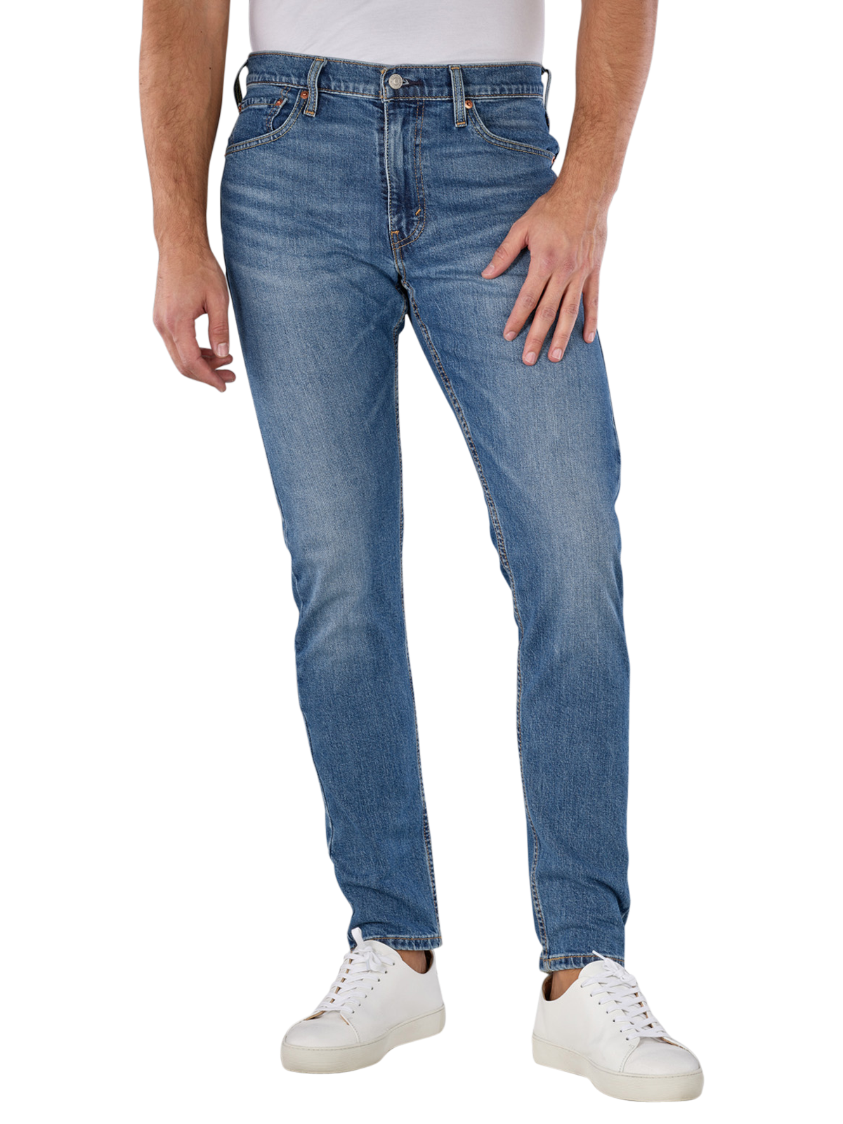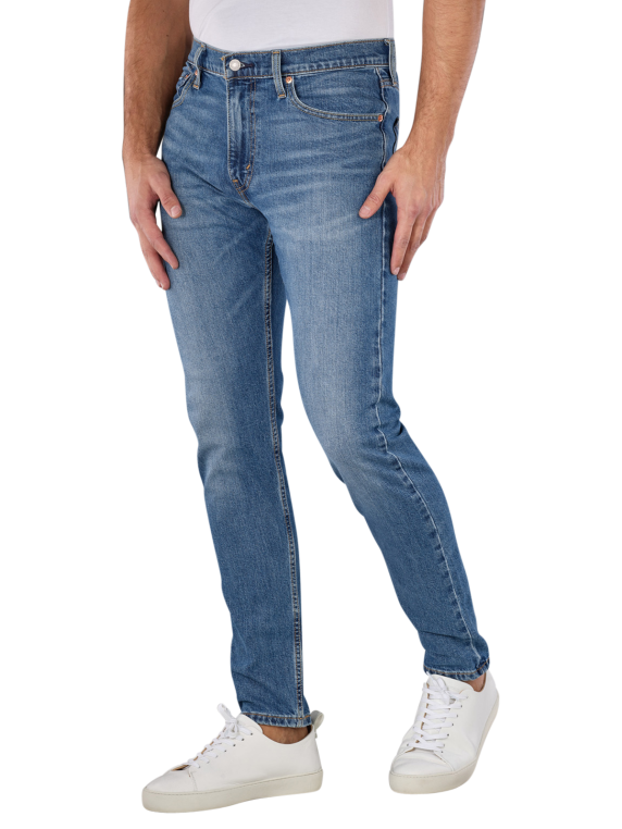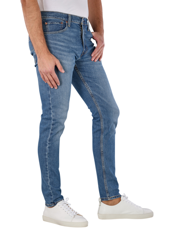 Die Levi's 512 Jeans in der Farbe Mittelblau bietet eine Slim Tapered Passform und einen mittleren Bund für Männer. Sie besteht aus 70% Baumwolle, 28% Lyocell und 2% Elasthan und besitzt eine Five-Pocket-Ausführung mit Reissverschluss. Die Jeans hat eine mittlere Waschung, ist dehnbar und eignet sich für den Normalwaschgang bei 30°C. Ideal für stilvolle, bequeme Alltagsoutfits.