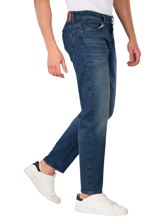 Die Boss Orange Re Maine Jeans Regular Fit in Dunkelblau bietet eine mittlere Bundhöhe und einen tapered Fit für optimalen Tragekomfort. Mit einem klassischen Five-Pocket-Design und einem Reissverschluss ausgestattet, eignet sich diese Jeans ideal für den Alltag. Der Stretchanteil sorgt für Bewegungsfreiheit, während die dunkle Waschung vielseitig kombinierbar ist. Pflegeleicht bei 30°C im Schonwaschgang, ist sie eine praktische Wahl für moderne Männer.