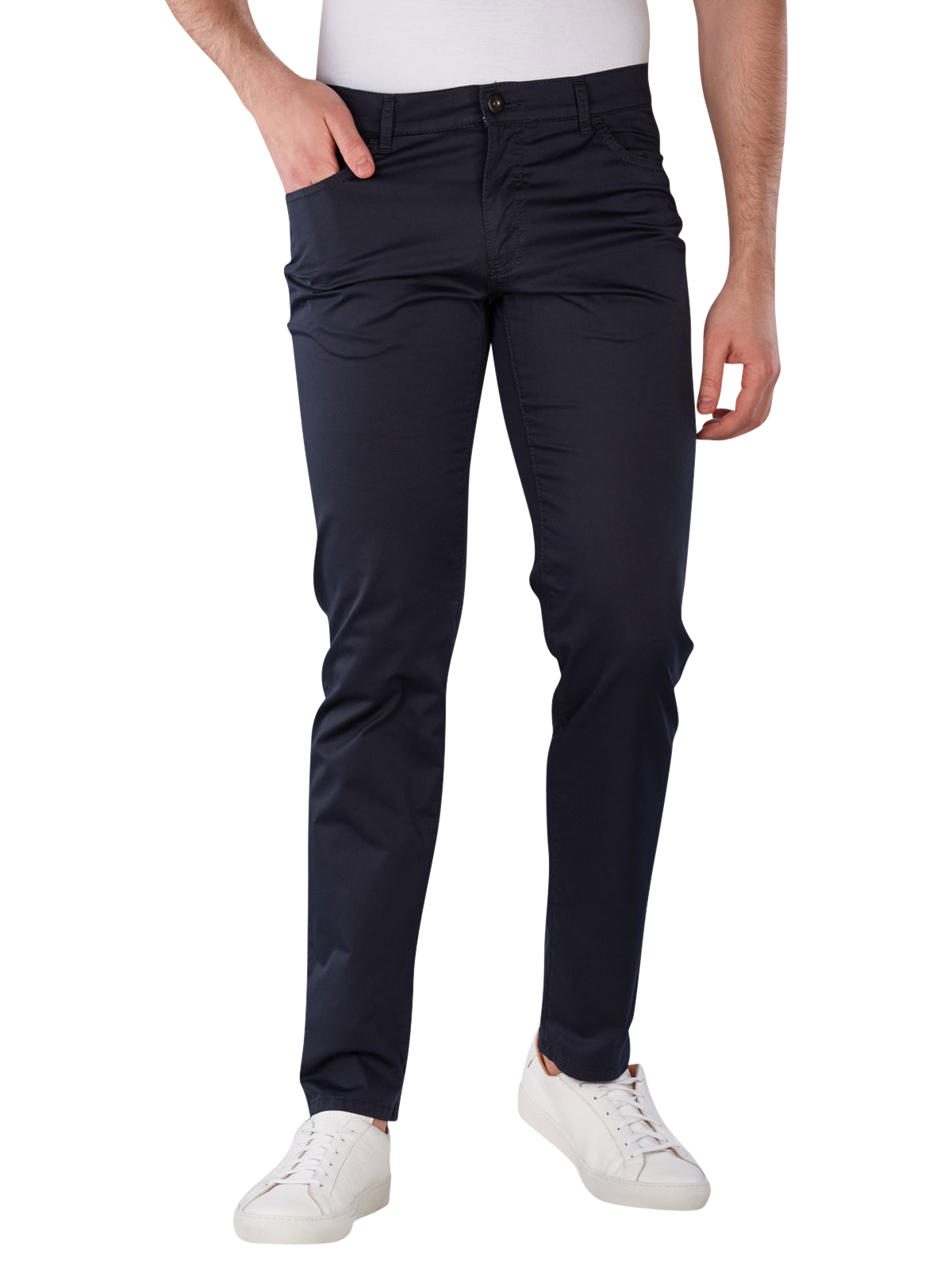 Die Brax Cadiz 5-Pocket Pants in Dunkelblau bieten eine gerade Passform und mittlere Bundhöhe. Sie sind aus einem dünnen, dehnbaren Stoff gefertigt, der Bewegungsfreiheit ermöglicht. Mit ihrem klassischen Five-Pocket-Design sind sie vielseitig kombinierbar. Der Reissverschluss sorgt für einen sicheren Sitz. Diese Hose eignet sich für verschiedene Anlässe und bietet durch den Stretchanteil zusätzlichen Komfort.