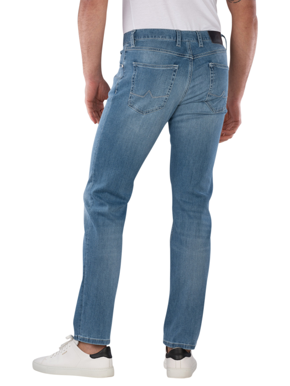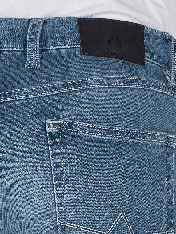 Die Alberto Pipe Jeans Regular Fit Super Stretch Dual FX Light B bietet einen geraden Beinausschnitt und eine mittlere Bundhöhe. Die hellblaue Waschung sorgt für einen modernen Look. Mit Stretchanteil passt sich die Jeans optimal an die Körperform an und bietet hohen Tragekomfort. Sie ist als Five-Pocket-Jeans konzipiert und lässt sich vielseitig kombinieren. Pflegeleicht bei 40°C im Normalwaschgang, OEKO-TEX STANDARD 100 zertifiziert.