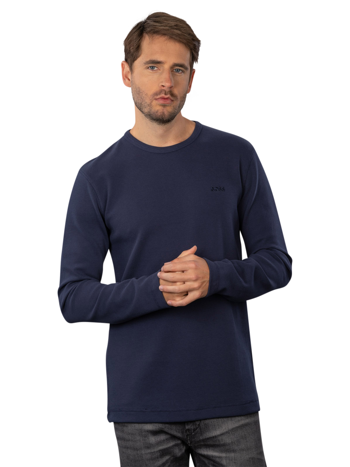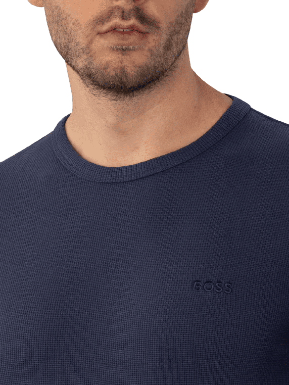 Der Boss Orange Tempesto Pullover in Dunkelblau bietet einen klassischen Rundhalskragen und ist ohne Kapuze gestaltet. Er eignet sich für verschiedene Freizeitaktivitäten und lässt sich vielseitig kombinieren. Der Pullover ist pflegeleicht und kann bei 30°C im Schonwaschgang gewaschen werden. Mit einem hohen Baumwollanteil sorgt er für angenehmen Tragekomfort und eine gute Passform.