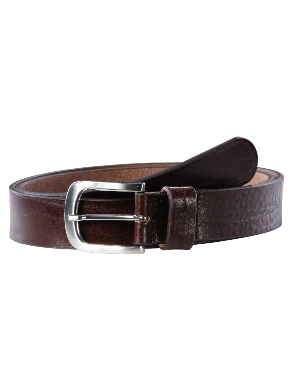 BASIC BELT's hochwetiger Gürtel aus dunkelbraunem und sorgfältig verarbeitetem Echtleder ist 35 Millimeter breit und mit einer eleganten Prägung versehen, um Ihrem Outfit den letzten Schliff zu verleihen. Das schlichte Design wird durch eine silberne Schnalle ergänzt und somit alltagstauglich.