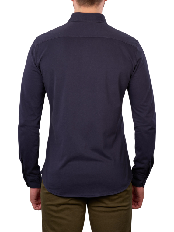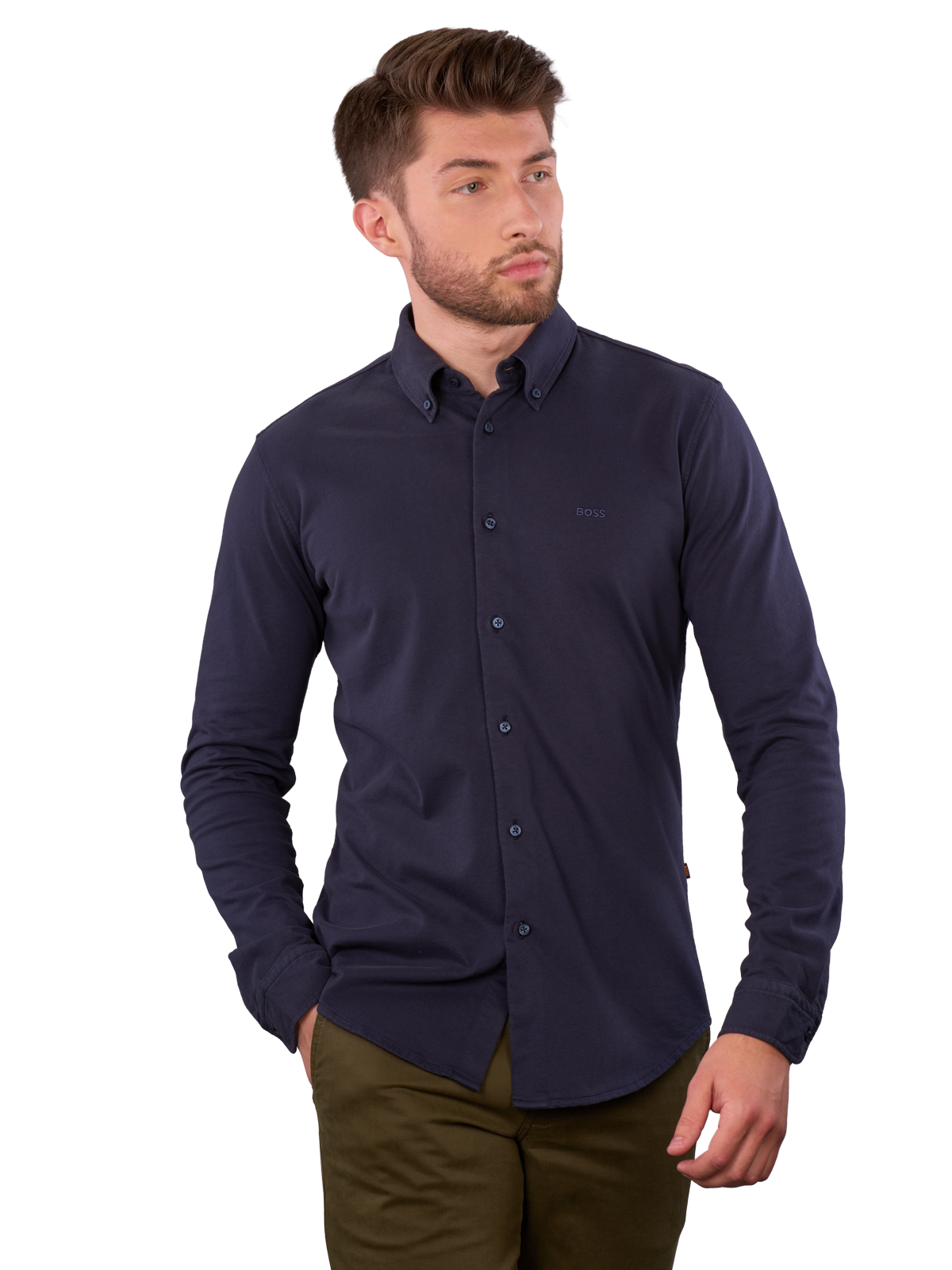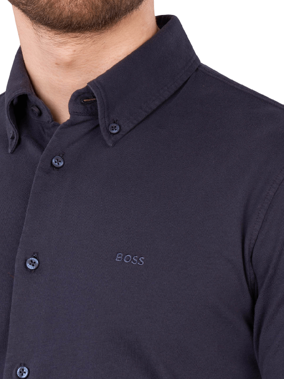 Das Boss Orange Myjersey Shirt Slim Fit in Dunkelblau bietet einen modernen Kentkragen und eine schlanke Passform für einen eleganten Look. Ideal für formelle Anlässe oder legere Outfits, lässt es sich vielseitig kombinieren. Die Pflegeanleitung empfiehlt einen Schonwaschgang bei 30°C und das Nichtbleichen, um die Qualität zu erhalten. Dieses Hemd vereint Stil und Komfort für den modebewussten Mann.