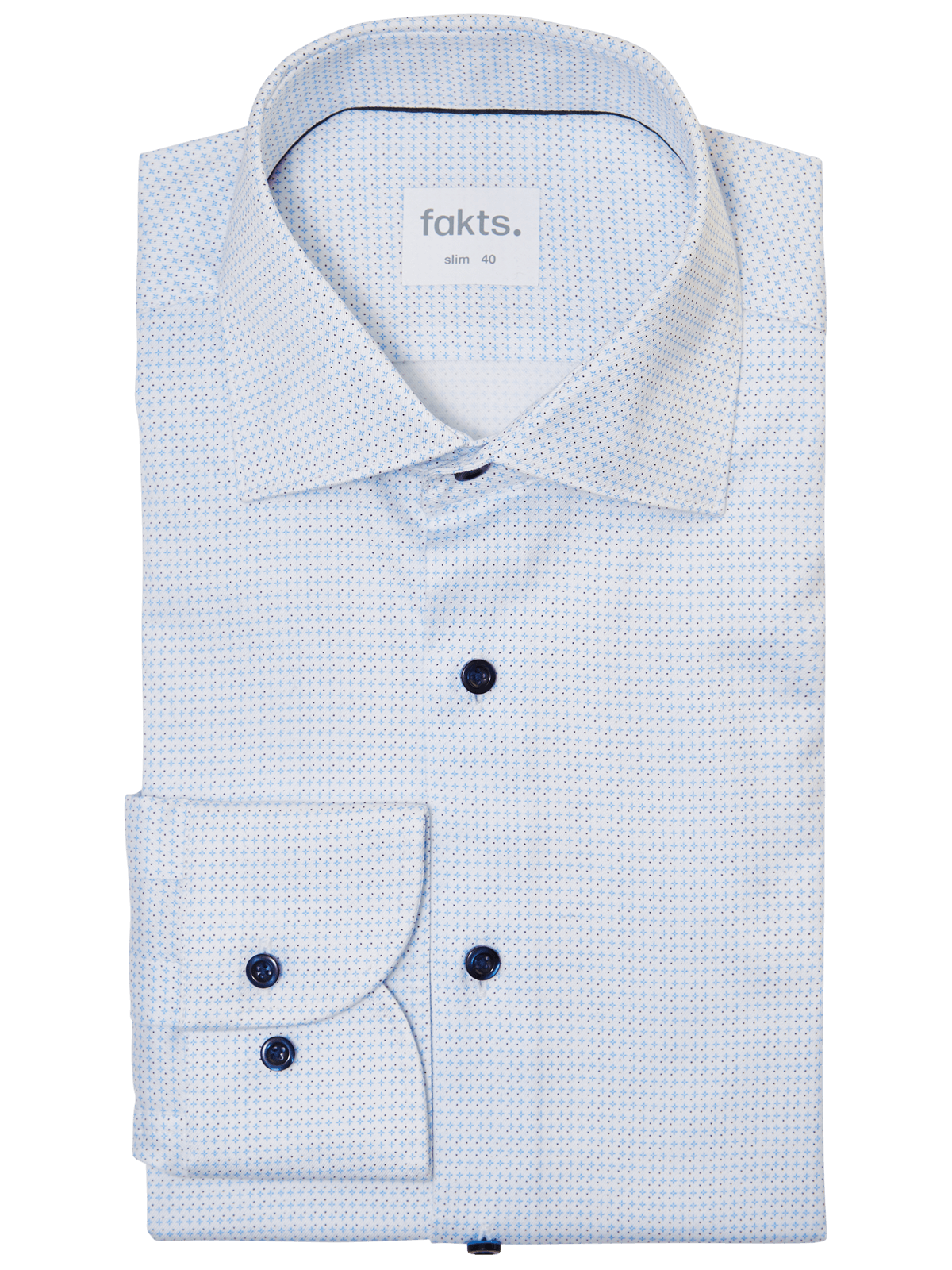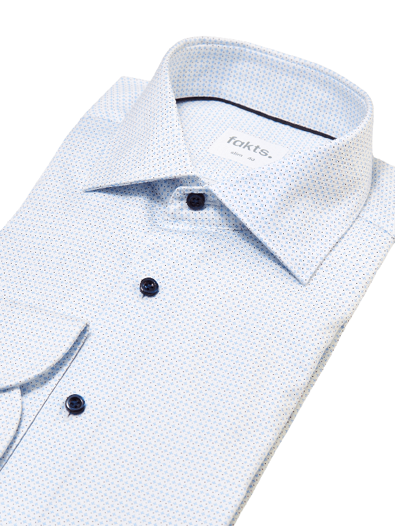 Das Fakts Shirt Modern Fit Busy in der Farbe Blue Minimum hat einen leicht taillierten Schnitt und wirkt mit Abnähern, gedoppelter Rückenpasse und gerundetem Saumabschluss besonders hochwertig. Hergestellt aus weicher Baumwolle mit geringem Stretchanteil ist das Herrenhemd nicht nur komfortabel zu tragen, es ist zudem atmungsaktiv. Vorteilhaft ist ausserdem die einfache Reinigung des bügellfreien Hemds bei 30 °C im Schonwaschgang.