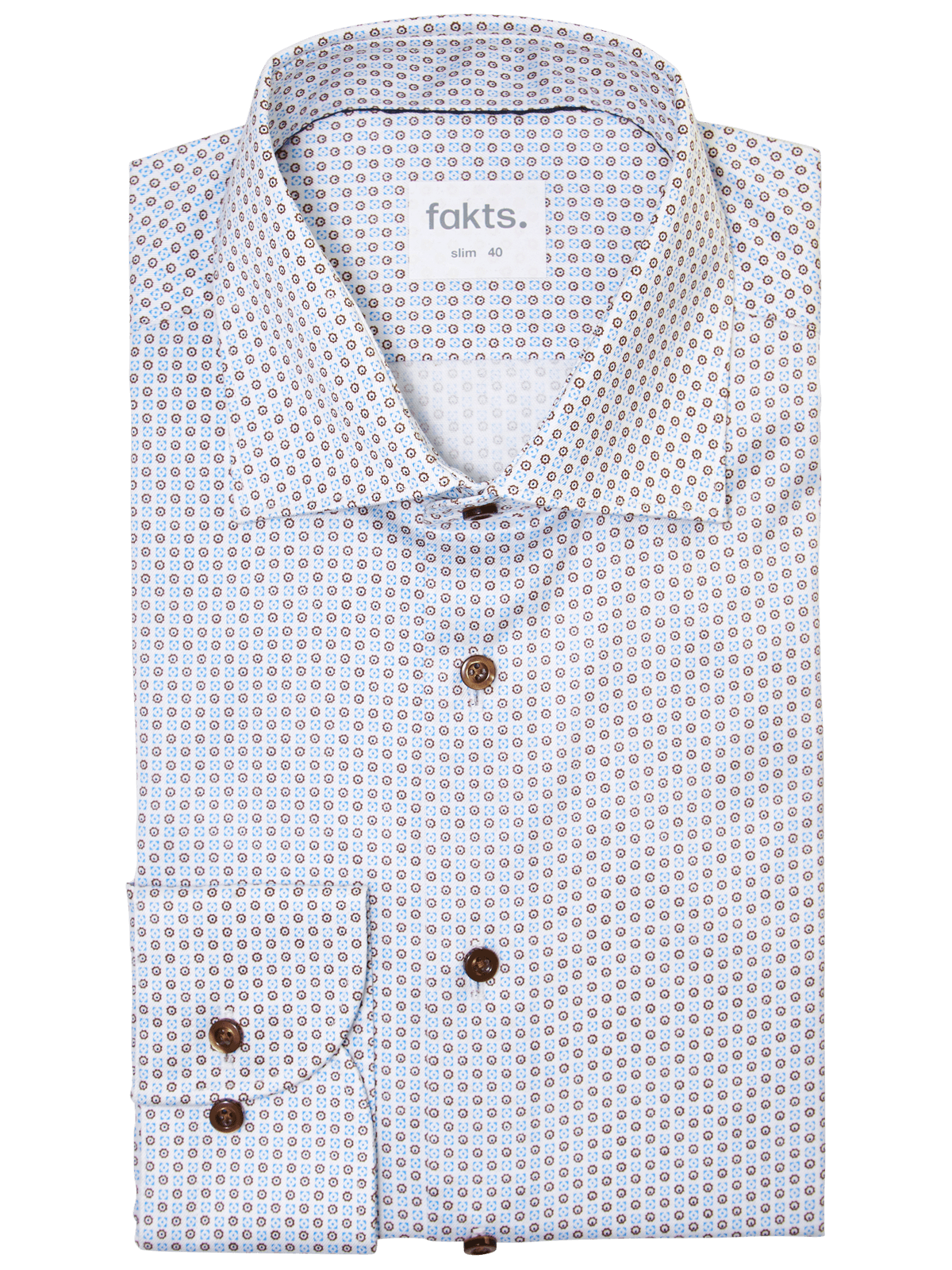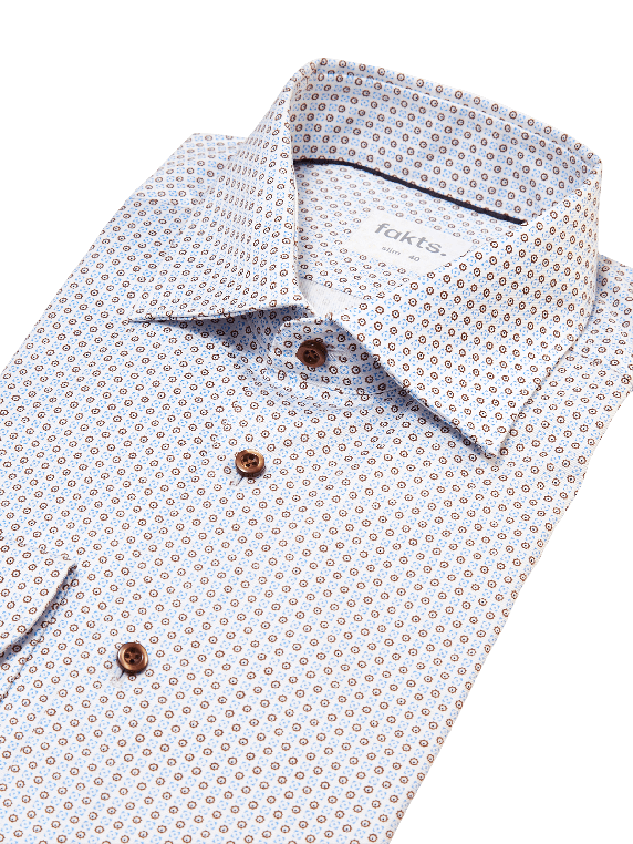 Dieses Fakts Shirt Modern Fit Busy ist ein aussergewöhnliches Herrenhemd im Retrostil, das wahlweise mit kleinteiligem Muster oder uni und mit auffällig dunklen Knöpfen in den Farben Brown Minimal, Blue Light Faux Uni oder White Uni erhältlich ist. Das bügelleichte Hemd ohne Tasche hat lange Arme und einen Kentkragen. Das Herrenhemd ist hochwertig aus Baumwolle mit einem geringen Anteil an Elasthan angefertigt.