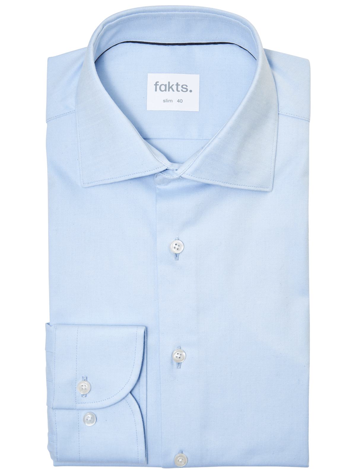 Dieses moderne und schmal geschnittene Fakts Shirt Slim Fit in einem attraktiven hellblau mit einem langen Arm sowie Kentkragen lässt sich leicht bügeln. Das Logo des bekannten Marke ist nicht sichtbar. Das unifarbene angenehm tragbare Material besteht aus 97 % Baumwolle und 3 % Elasthan.