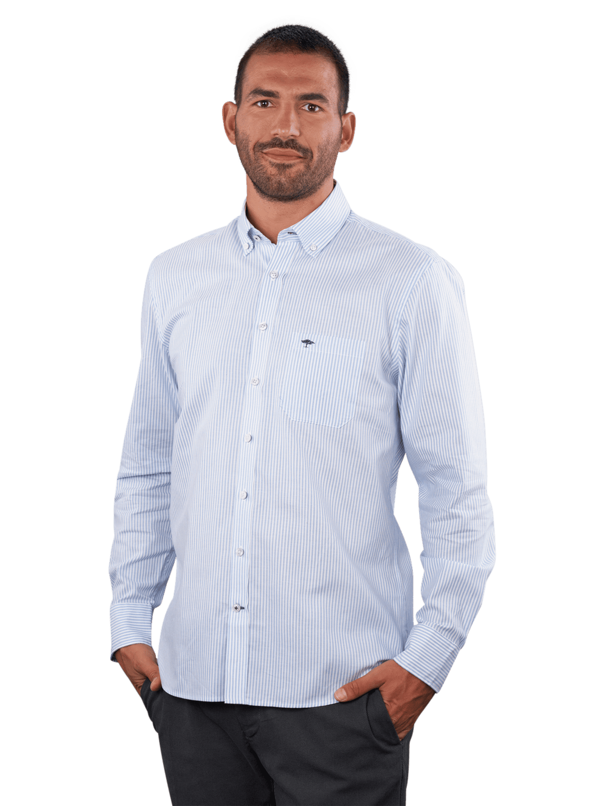 Das Fynch-Hatton All Season Oxford Shirt light blue stripe aus weicher Baumwolle ist ein Klassiker für Business und Freizeit. Der elegante Button-down-Kragen, die durchgehende Knopfleiste und die dezente Logostickerei vollenden den bequemen und zeitosen Look.
