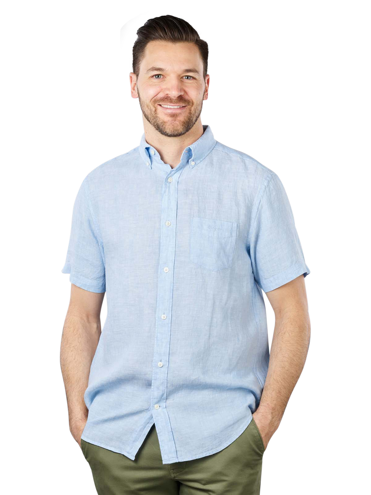 Das aus reinem Leinen gefertigte Herrenhemd des Labels Gant zeigt sich mit charakteristischen Button-down- Kragen, Logo-Detail im Bereich der Brust, Brusttasche, Kurzarm-Design, Kellerfalte am Rücken und monochromen Design. Danks des verarbeiteten Leinengewebes begeistert das in dem zarten Farbton Capri Blue designte Modell mit natürlich-edler Optik, hautsanfter, ökologischer Beschaffenheit und luftigem Tragegefühl. Das zu 100 % aus Naturfasern bestehende und locker fallende Hemd ist besonders robust und natürlich schmutzresistent. Es dient als Basis für geschmackvolle Street Style- und Casual-Outfits und fördert die Kreation hochwertiger Gesamtlooks.