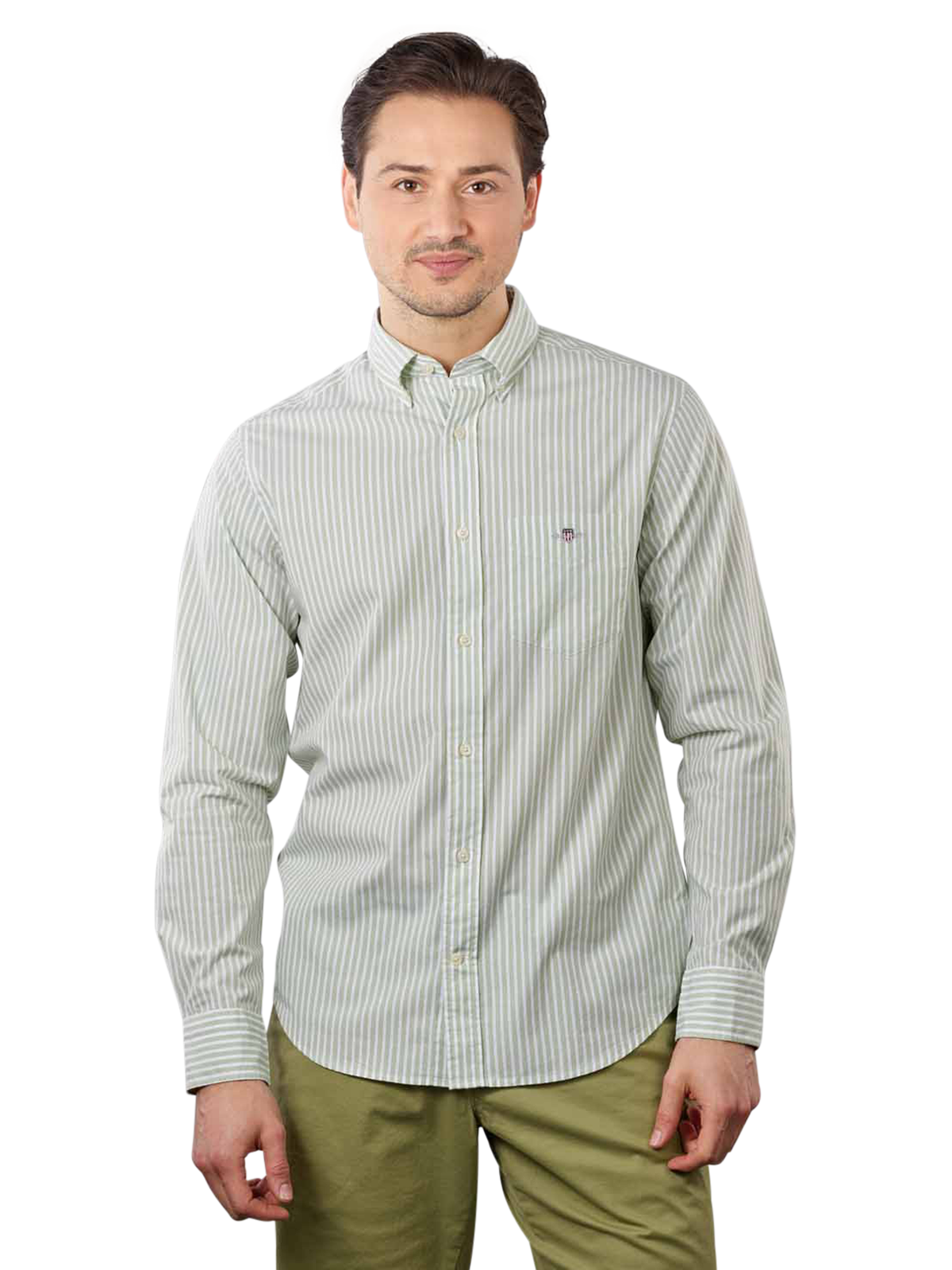 Dieses Langarm-Hemd von Gant zeichnet sich durch ein attraktives Streifenmuster in Weiss und Hellgrün aus. Der Button-down Kragen und die Brusttasche mit dem dezenten Logo machen dieses Hemd zu einem echten Klassiker. Das Rückenteil ist mit einem Sattel und einer Falte gearbeitet, die dem Hemd die nötige Weite für eine normale Passform verleiht. Als Material wurde für dieses Modell reine Baumwolle gewählt.
