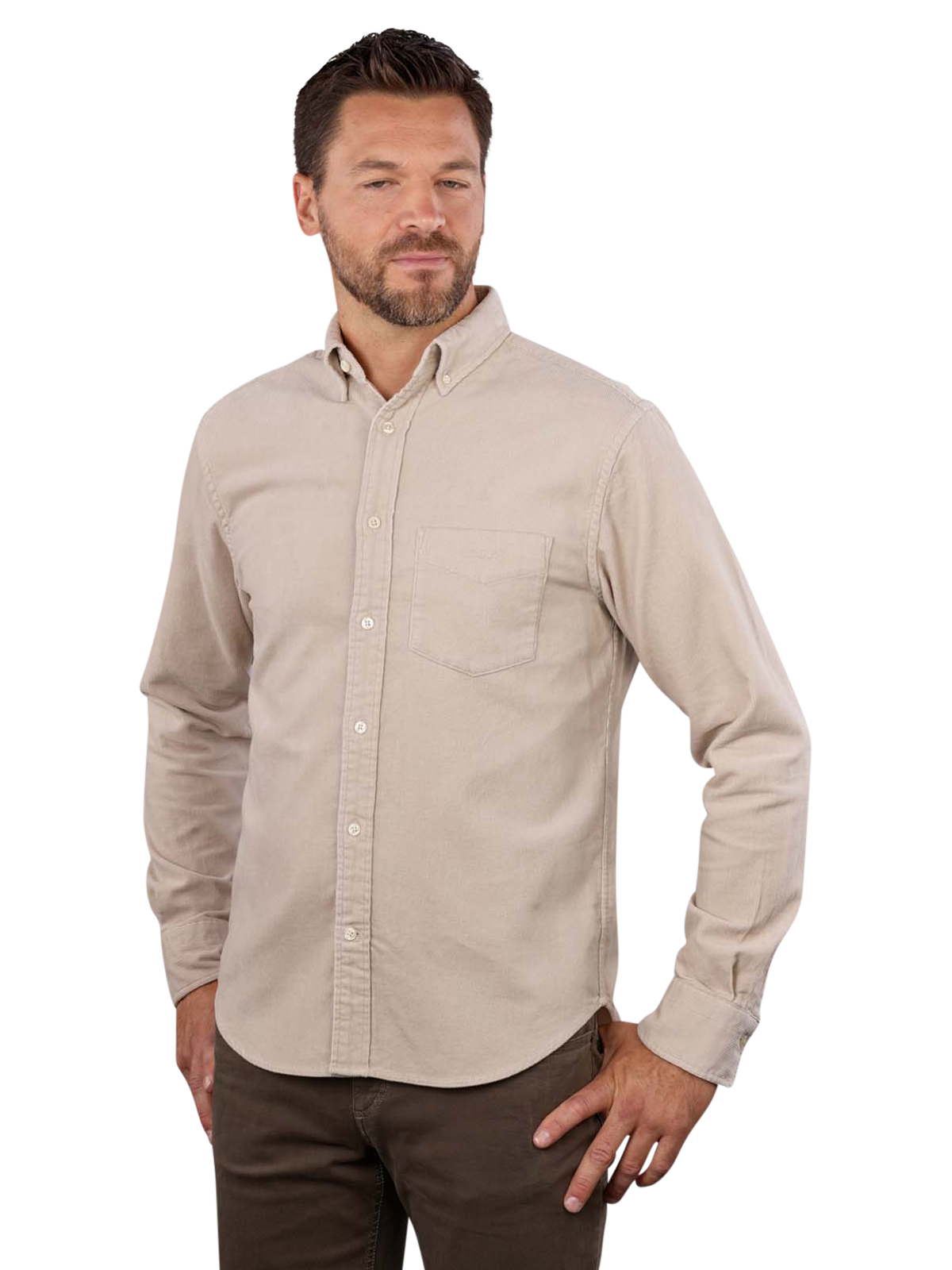 Das Gant Regular Corduroy Shirt in Putty Beige ist ein stilvolles Herrenhemd mit langen Ärmeln und Button-down-Kragen. Hergestellt aus 100% Baumwolle, bietet es hohen Tragekomfort und Atmungsaktivität. Ideal für den Alltag und besondere Anlässe, kann das Hemd im Normalwaschgang bei 30°C gewaschen werden. Ein elegantes und vielseitiges Kleidungsstück, das sich leicht in jede Garderobe integrieren lässt.
