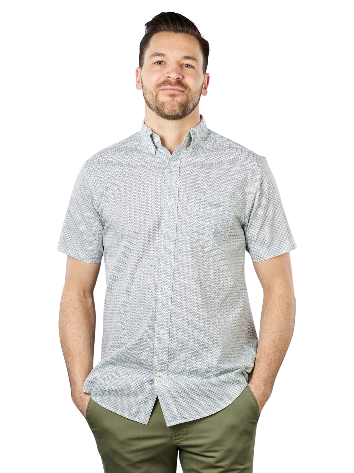 Das Oberteil für Herren besitzt kurze Arme, einen Button-down Kragen und eine Brusttasche. Auf dieser ist ein dezent sichtbares Logo vorhanden. Die reine Baumwolle ermöglicht es, ein hautfreundliches und atmungsaktives Oberteil zu tragen. Zudem ist es pflegeleicht, daher lässt es sich super bei einem Normalwaschgang mit 40 Grad waschen. Das Trocknen auf niedriger Temperatur ist ebenfalls möglich.