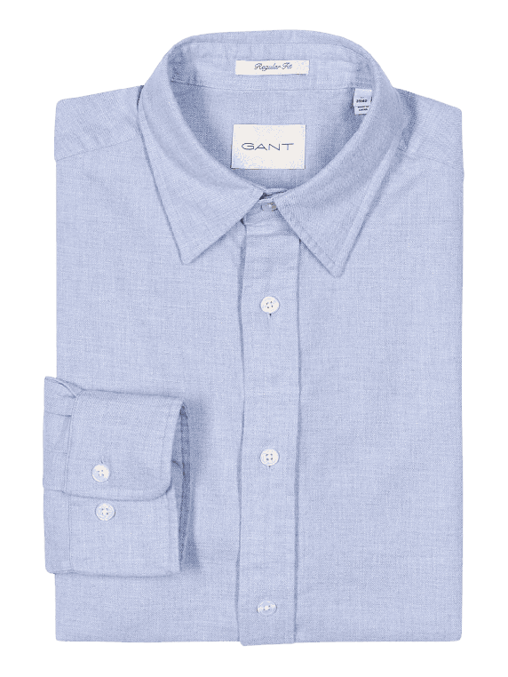 Das Gant Shirt Regular Fit Flannel Melange in Hellblau bietet einen klassischen Kentkragen und eine bequeme Passform für Männer. Es eignet sich für formelle und informelle Anlässe. Die 100% Baumwolle sorgt für Atmungsaktivität und Tragekomfort. Bei 40°C waschbar, ist es pflegeleicht und langlebig. Kombinieren Sie es mit Jeans oder Chinos für einen stilvollen Look.