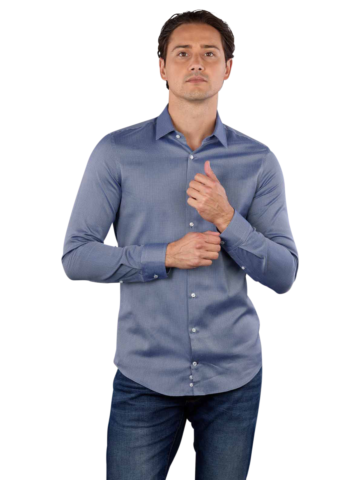 Das Joop Long Sleeve Pierre 1 Shirt in Slim Fit und Pastel Blue ist ein stilvolles Herrenhemd in Mittelblau. Es gehört zur Kategorie Hemden und hat eine Hai-Kragenform. Hergestellt aus 100% Baumwolle bietet es höchsten Tragekomfort. Zur Pflege wird ein Schonwaschgang bei 30°C empfohlen, und das Hemd sollte nicht gebleicht werden. Ein elegantes Kleidungsstück für modebewusste Männer.