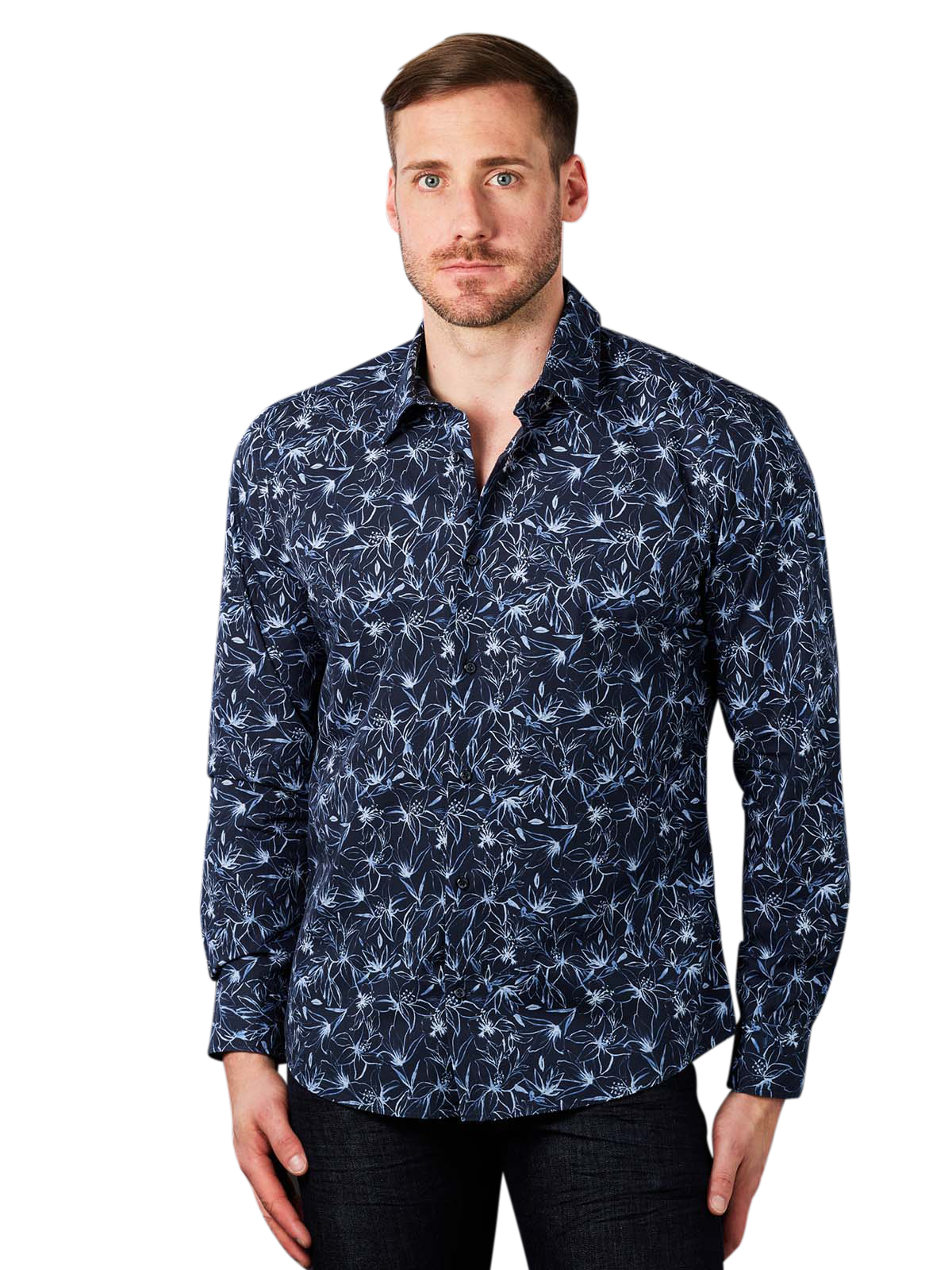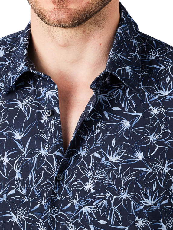 Das Long Sleeve Shirt Perros der Marke Joop ist ein Langarmhemd mit Floral-Muster und Kent-Kragen. Es ist zu 100 % aus Baumwolle hergestellt, verfügt über keine Taschen und passt sowohl zum Casual- als auch zum Business-Look. Das Markenlogo ist nicht sichtbar.