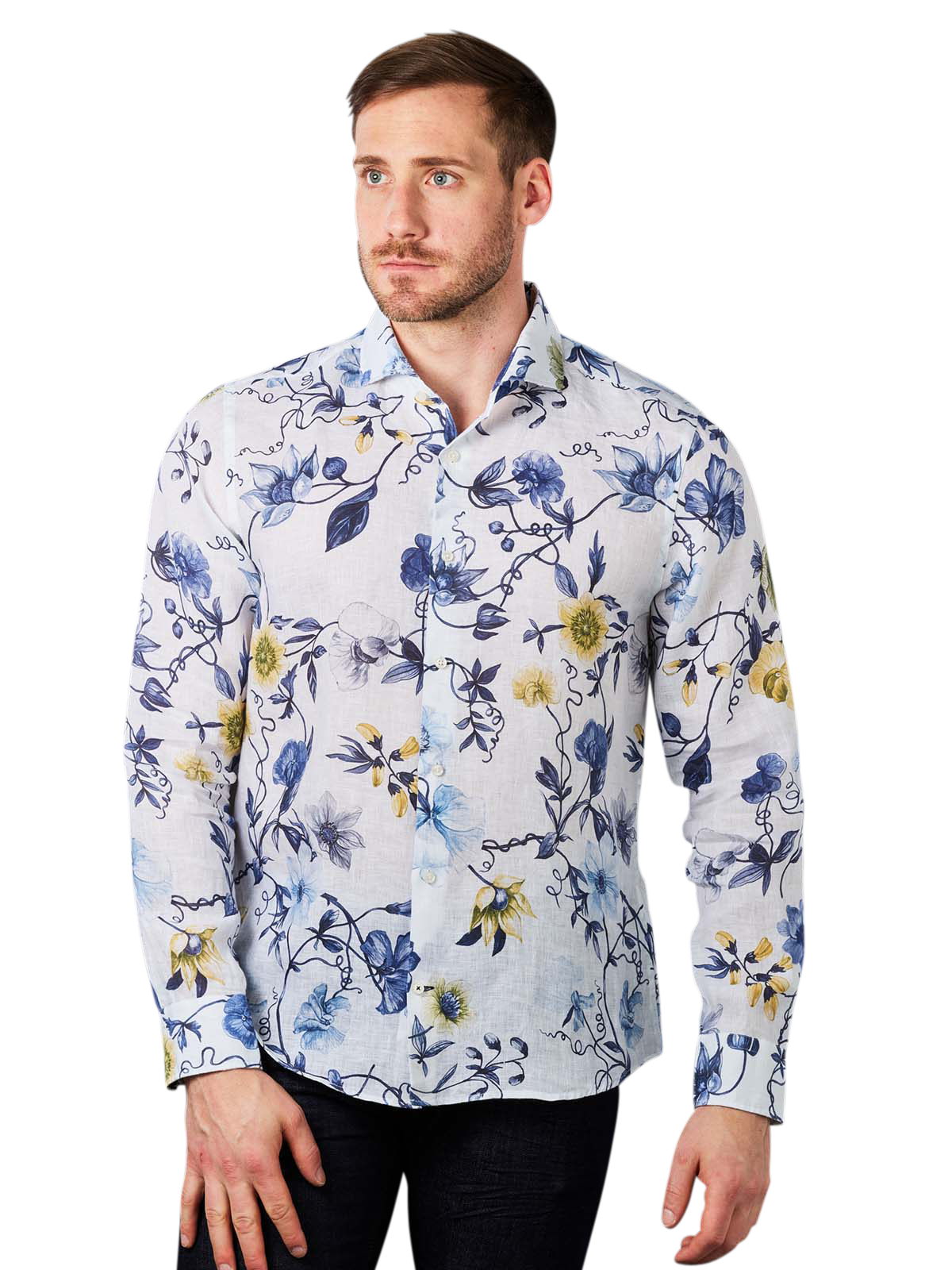 Die floralen Muster des Joop Pejos Linen Shirt Flower Print sind der absolute Hingucker. Die Blumen sind in Blau- und Gelbtönen gehalten. Das moderne Hemd ist langärmlig und hat eine Knopfleiste und einen Kragen. Es ist locker geschnitten und für den Casual- und den Businesslook geeignet. Es besteht zu 100 % aus Baumwolle.