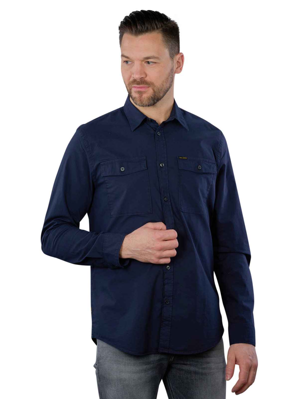 Entdecken Sie das PME Legend Long Sleeve Shirt in der stilvollen Salute-Farbe Dunkelblau. Dieses Herrenhemd vereint Komfort und Eleganz mit seinem klassischen Kentkragen und der perfekten Passform. Hergestellt aus hochwertiger Baumwolle und einem Hauch Elasthan, bietet es Flexibilität und Atmungsaktivität für den ganzen Tag. Ideal für legere Anlässe oder das Büro, ist es pflegeleicht und kann bei 30°C im Schonwaschgang gewaschen werden. Setzen Sie auf stilvolle Vielseitigkeit!