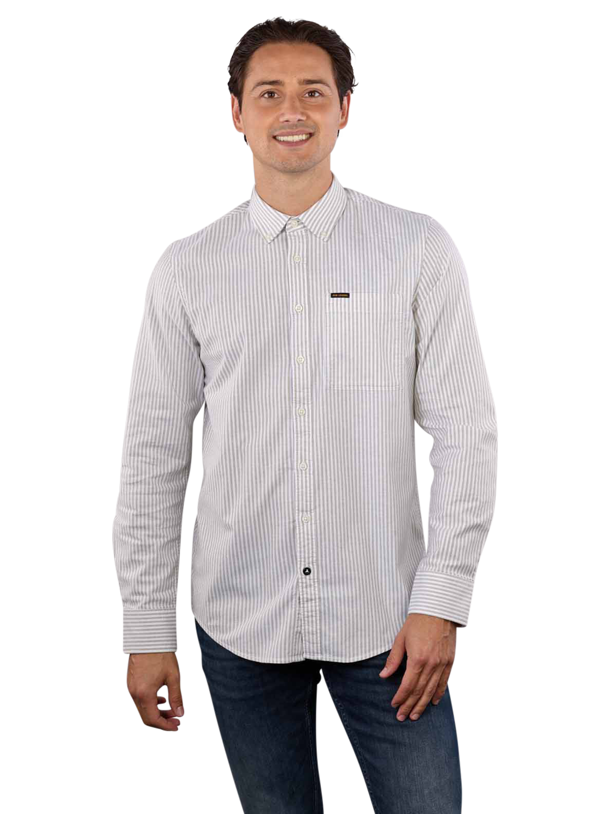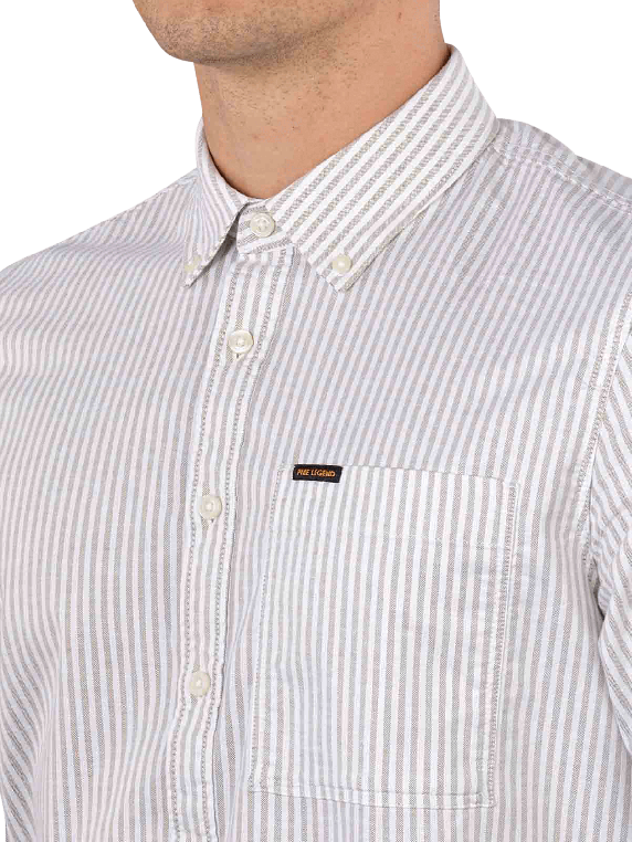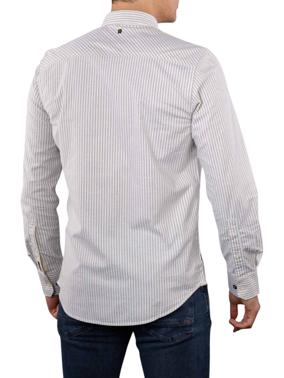 Das PME Legend Long Sleeve Shirt Striped Oxford in Dried Herb ist ein stilvolles Herrenhemd in Beige und Weiss. Es verfügt über einen klassischen Button-down Kragen und ist aus 97% Baumwolle sowie 3% Elasthan gefertigt, was für hohen Tragekomfort sorgt. Das Hemd eignet sich ideal für Freizeit und Business. Es sollte im Schonwaschgang bei 30 Grad gewaschen und nicht gebleicht werden.