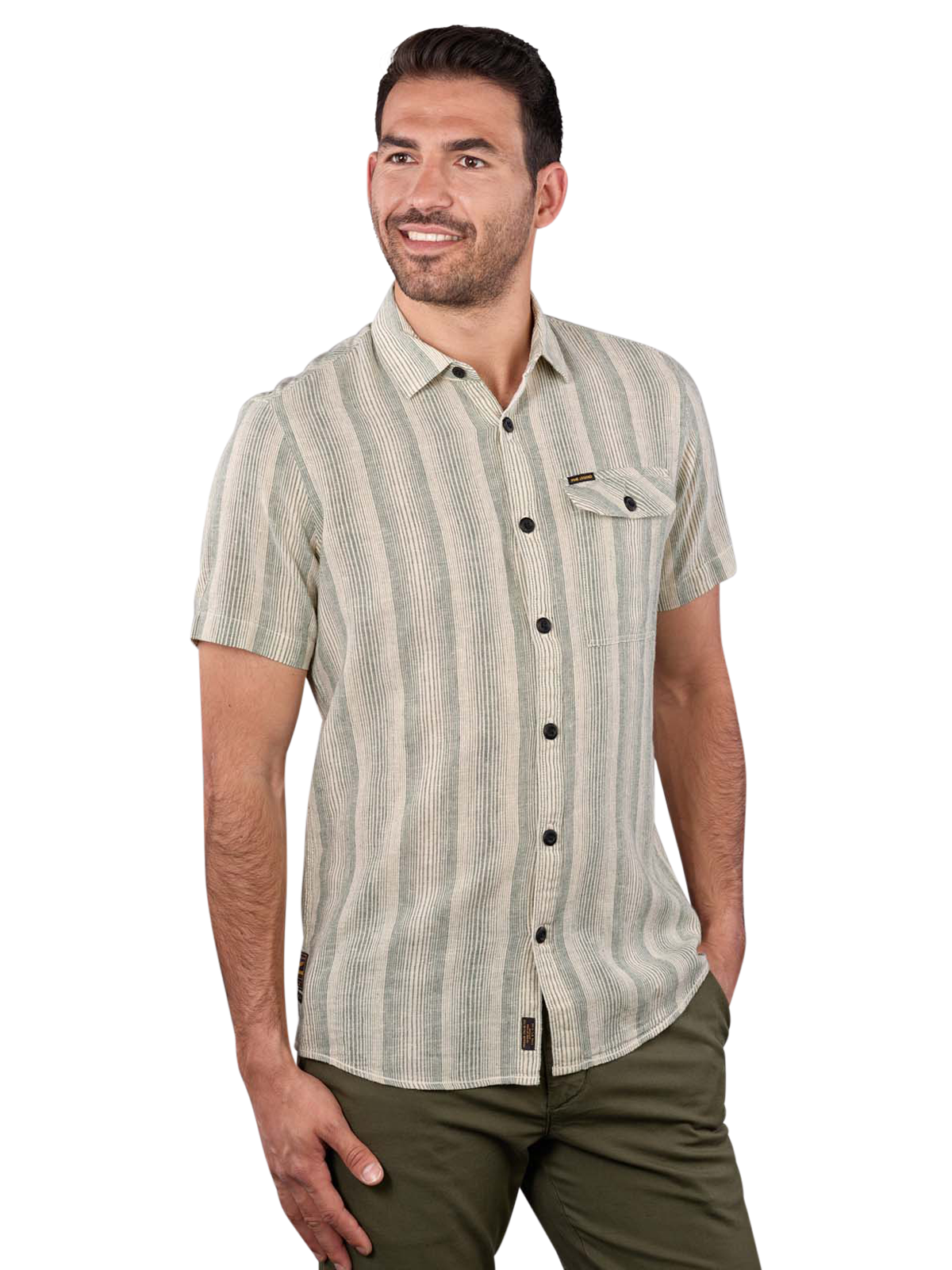 Das elegante Herrenhemd mit geradem Schnitt ist perfekt für alle, die es gern bequem haben und dennoch ihren einzigartigen Stil beweissen wollen. Das kurzärmlige Hemd mit Hai-Kragen und Brusttasche wurde aus 30% Leinen und 70 % Baumwolle hergestellt und sichert so ein angenehmes Tragegefühl auf der Haut. Das gerade geschnittene Hemd kann im Schonwaschgang bei 30 Grad gereinigt werden, sollte jedoch nicht im Trockner getrocknet werden.
