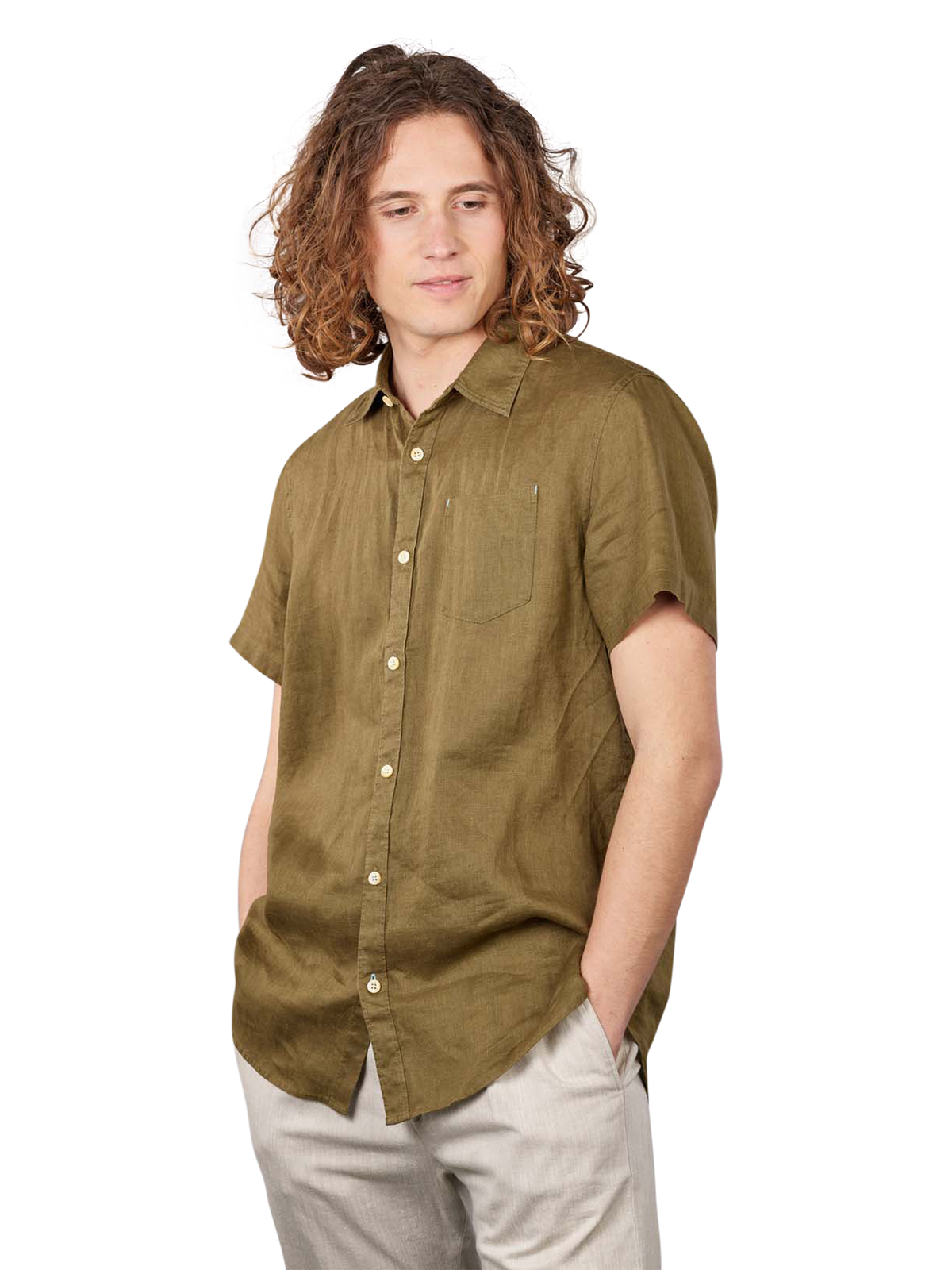 Das Oberteil für Herren besteht aus 100 Prozent Leinen. Dadurch kann es perfekt an warmen Tagen getragen werden. Um das Oberteil zu schonen, sollte es im Schonwaschgang bei 30 Grad gewaschen und auf der Leine getrocknet werden. Eine Bügeltemperatur von höchstens 110 Grad wird empfohlen. Das Oberteil verfügt über die Comfort Fit-Passform und ist daher gut für einen Casual Stil geeignet.