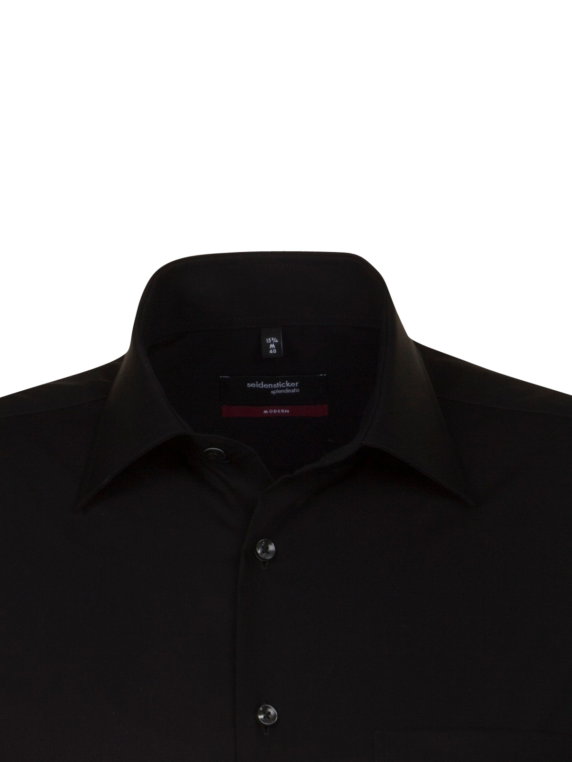 Einer der Klassiker aus der Seidensticker Kollektion ist das Seidensticker Splendesto Shirt black. Der elegante Schnitt, die langen Ärmel, selbstverständlich mit der kleine Rose und das Fehlen einer Brusttasche machen das Hemd zum perfekten Businesshemd. Des Weiteren ist das Hemd auch bügelfrei, verknittert nicht so leicht und ist aus reiner, atmungsaktiver Baumwolle gefertigt. Eleganz und Komfort werden hier in Perfektion vereint.