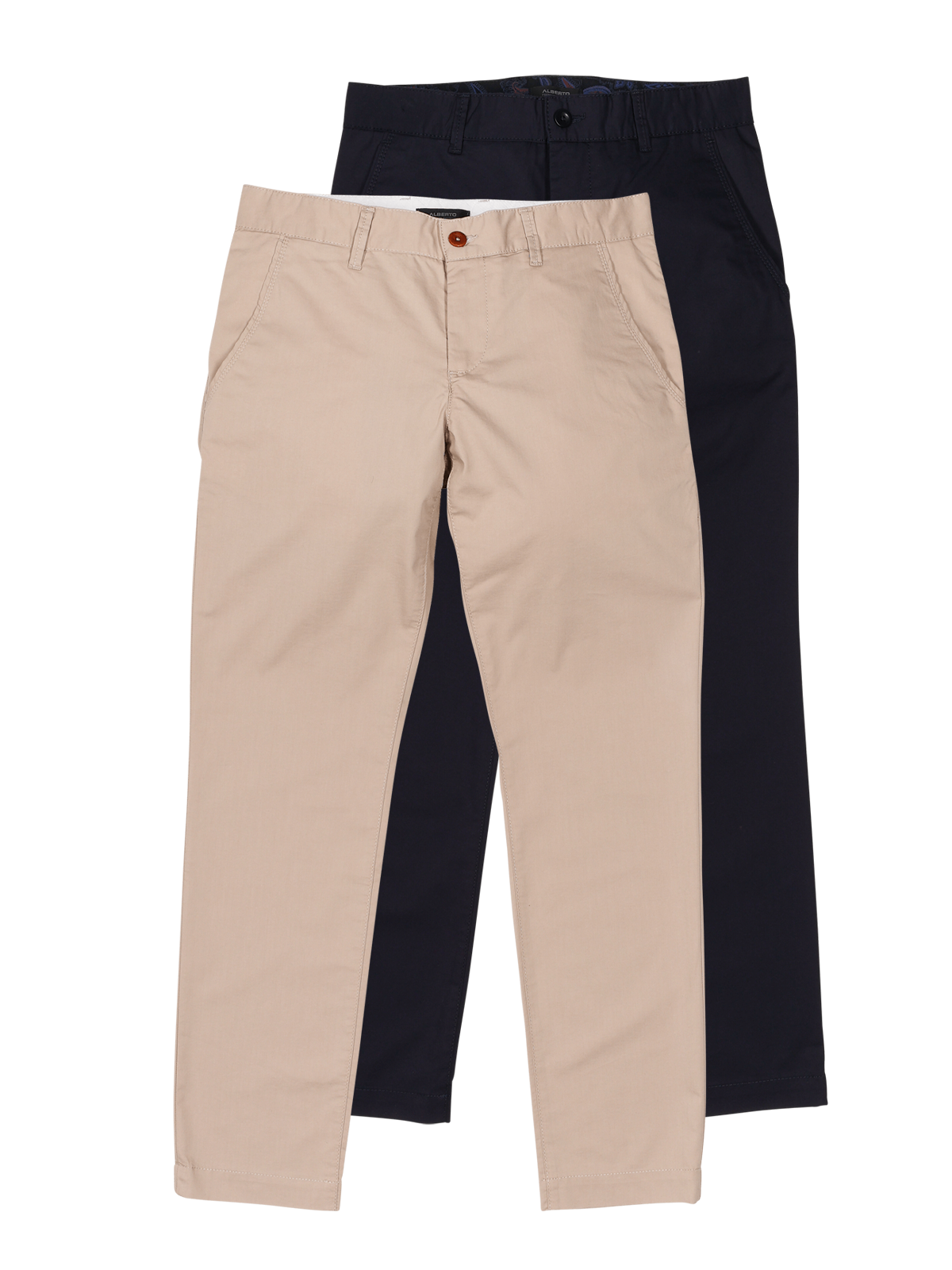 Der Alberto Lou Chino Regular Fit 2-Pack für Männer bietet eine stilvolle Auswahl an Hosen in Dunkelblau und Beige. Diese Slim-Fit-Chinos besitzen einen geraden Beinausschnitt und eine mittlere Bundhöhe. Gefertigt aus 63% Baumwolle, 32% Polyester und 5% Elasthan, sorgt der dehnbare, dünne Stoff für hohen Tragekomfort. Die Hosen sind mit einem Reissverschluss versehen und für Schonwaschgang bei 30°C geeignet. Bleichen ist nicht empfohlen.