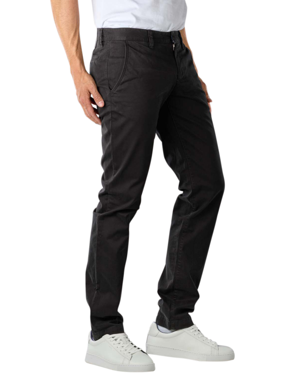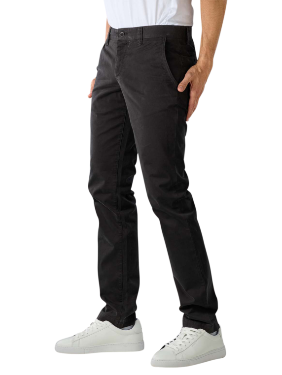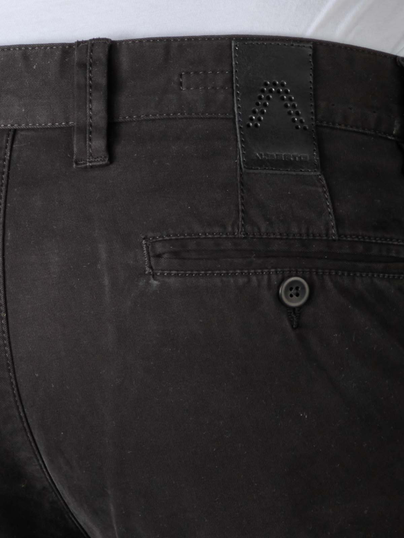 Tiefes Schwarz gibt der Alberto Lou Pant Pima Cotton black eine coole Optik. Selbst das Logo am hinteren Bund ist schwarz, ebenso wie die Knöpfe der verdeckten Gesässtaschen. Durch die seitlichen Eingrifftaschen wirkt die Hose elegant und stilvoll, während das tiefe Schwarz ein wenig rebellisch erscheint.