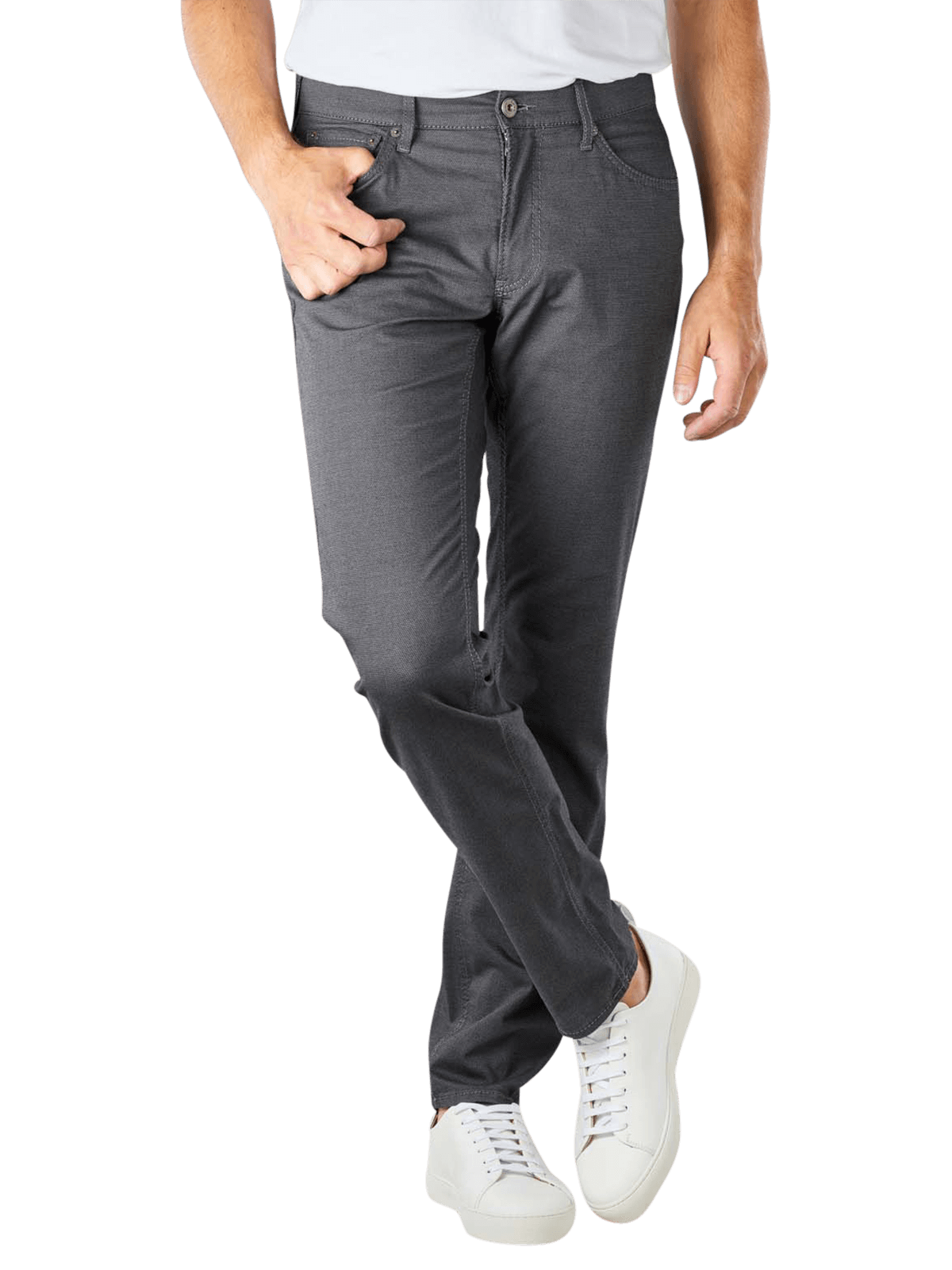 Die Chuck Pants Slim Fit von Brax überzeugt durch seinen perfekten Sitz. Die Pants werden mit einem Reissverschluss geschlossen. Der Stretchanteil sorgt für einen bequemen Fall des Stoffes. Die Five-Pocket-Hose mit einem Straight und Slim Fit Sitz fällt an den Oberschenkeln gerade und eng. Der Beinausschnitt verläuft gerade. Der Materialmix aus 55 % Baumwolle, 28 % Polyester und Viskose-/Elasthananteil überzeugt vollständig.