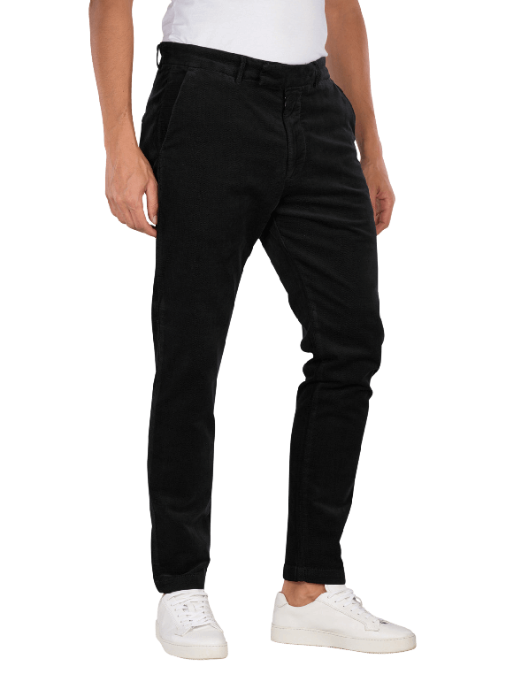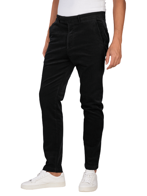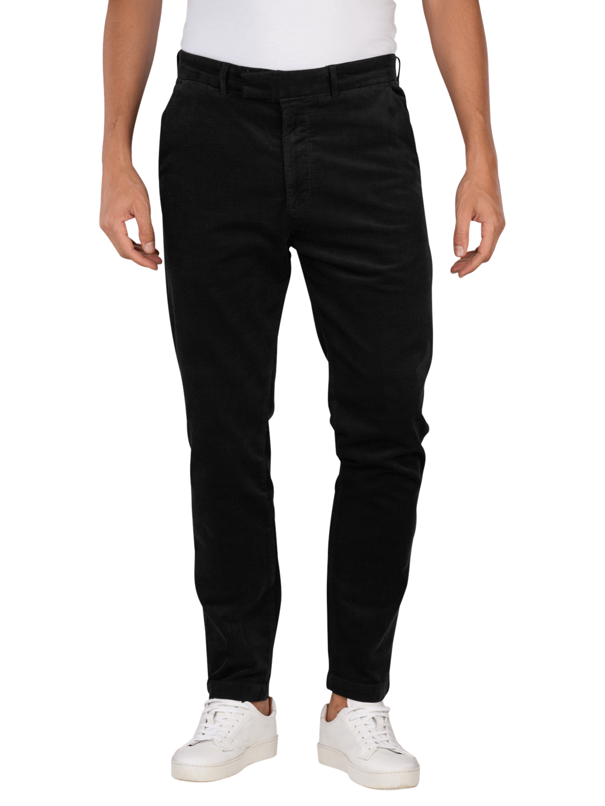 Die Cinque Cibeppe Chino Tapered Fit in Schwarz bietet eine moderne Passform mit einem engen Beinausschnitt und mittlerer Bundhöhe. Diese Chinohose kombiniert Stil und Komfort durch den Stretchanteil, der Bewegungsfreiheit ermöglicht. Sie eignet sich für verschiedene Anlässe und lässt sich vielseitig kombinieren. Der Reissverschluss sorgt für eine einfache Handhabung. Pflegeleicht bei 30°C im Normalwaschgang.
