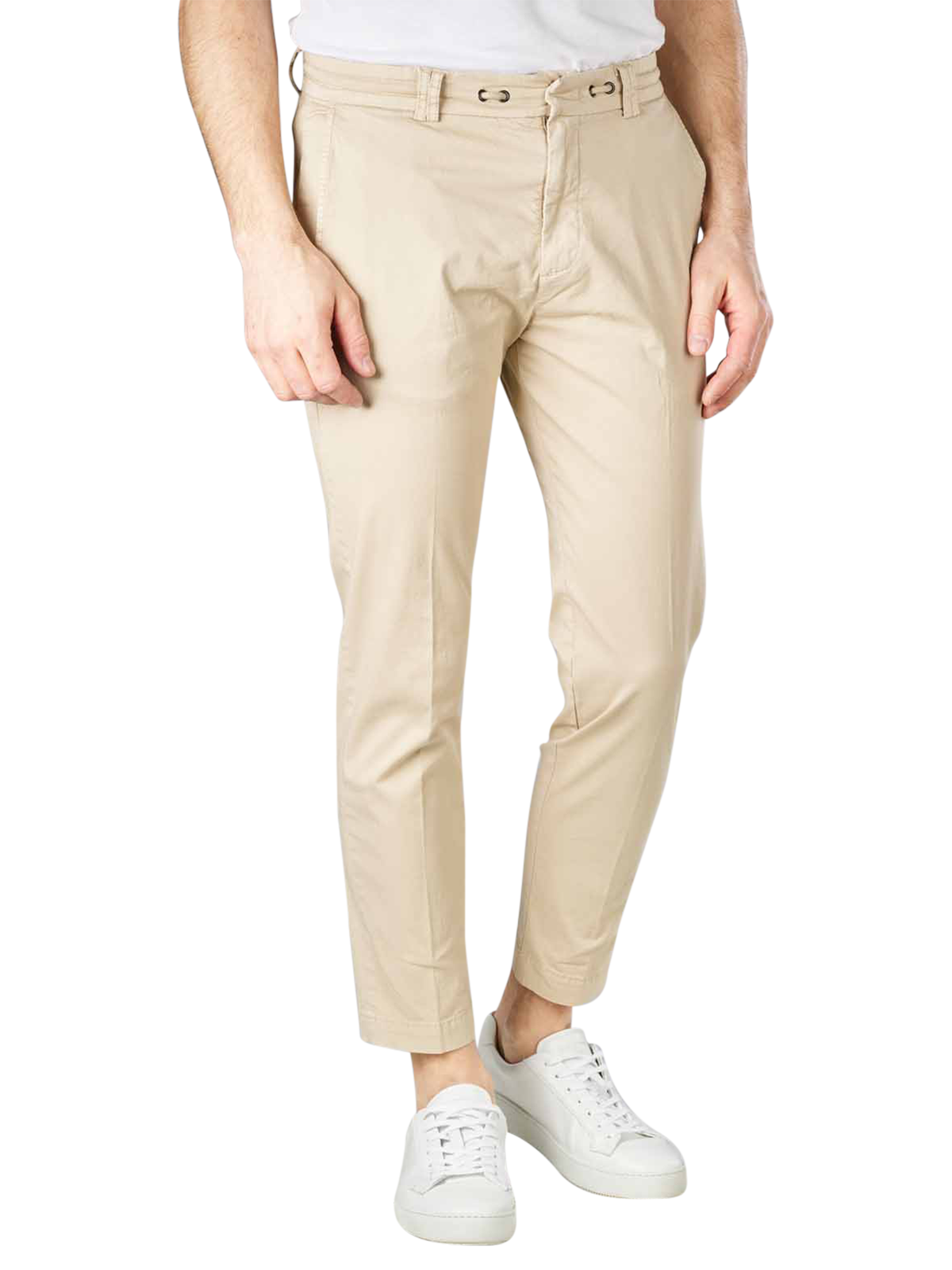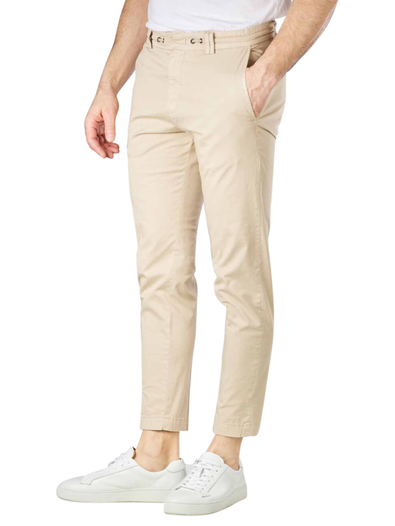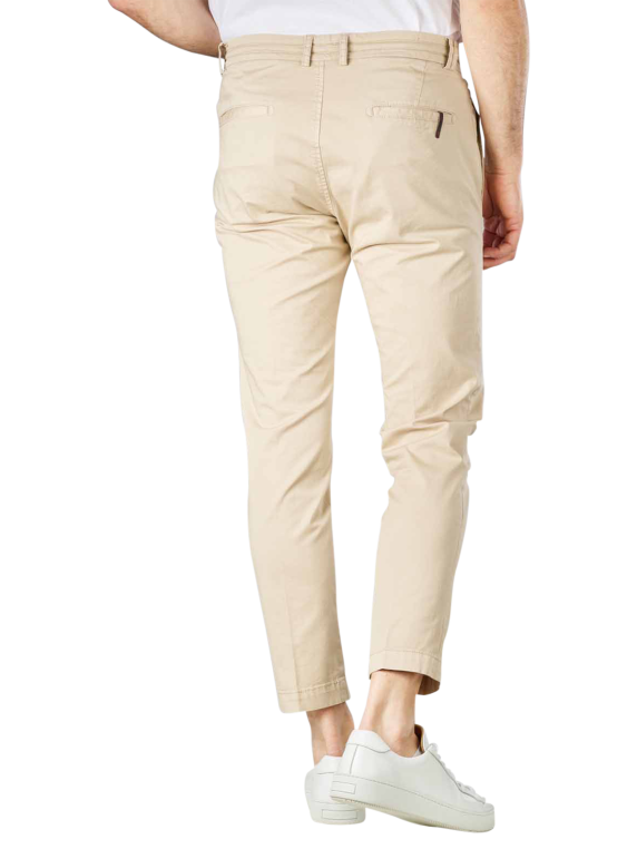 Die perfekt sitzende topmodische Chino aus dünnem Stoff in Beige fällt durch ihre extravagante sowie stilvolle Verarbeitung im Gürtelbereich auf. Diese besondere Slim Fit Form zaubert eine attraktive und figurschmeichelnde Silhouette. Die Chino wird durch einen klassischen Reissverschluss verschlossen. Am Bein sitzt der Stoff angenehm und figuranliegend. Das Beinende liegt eng an.