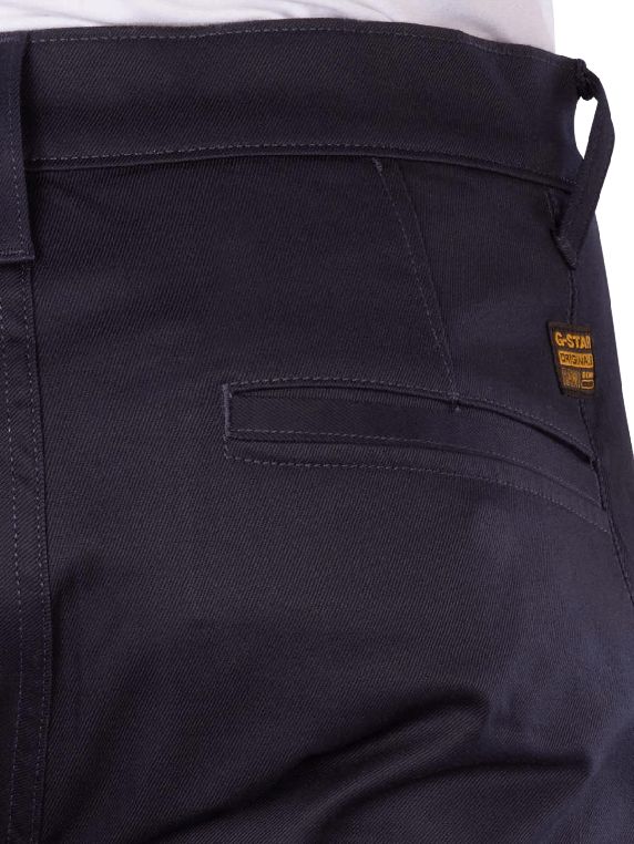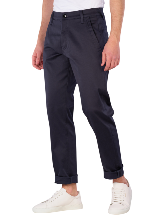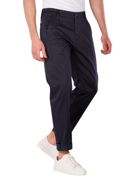 Entdecken Sie die G-Star Morry Chino Tapered Fit in elegantem Dunkelblau. Diese stilvolle Herrenhose kombiniert einen mittelhohen Bund mit einem tapered Fit für einen modernen Look. Der gerade Beinausschnitt sorgt für eine lässige Silhouette, während der Stretchanteil aus 97% Baumwolle und 3% Elasthan maximalen Komfort bietet. Die standarddicke Stoffqualität macht sie zu einem optimalen Begleiter für jeden Anlass. Einfach im Normalwaschgang bei 30°C reinigen und nicht bleichen für langanhaltende Freude am Kleidungsstück.