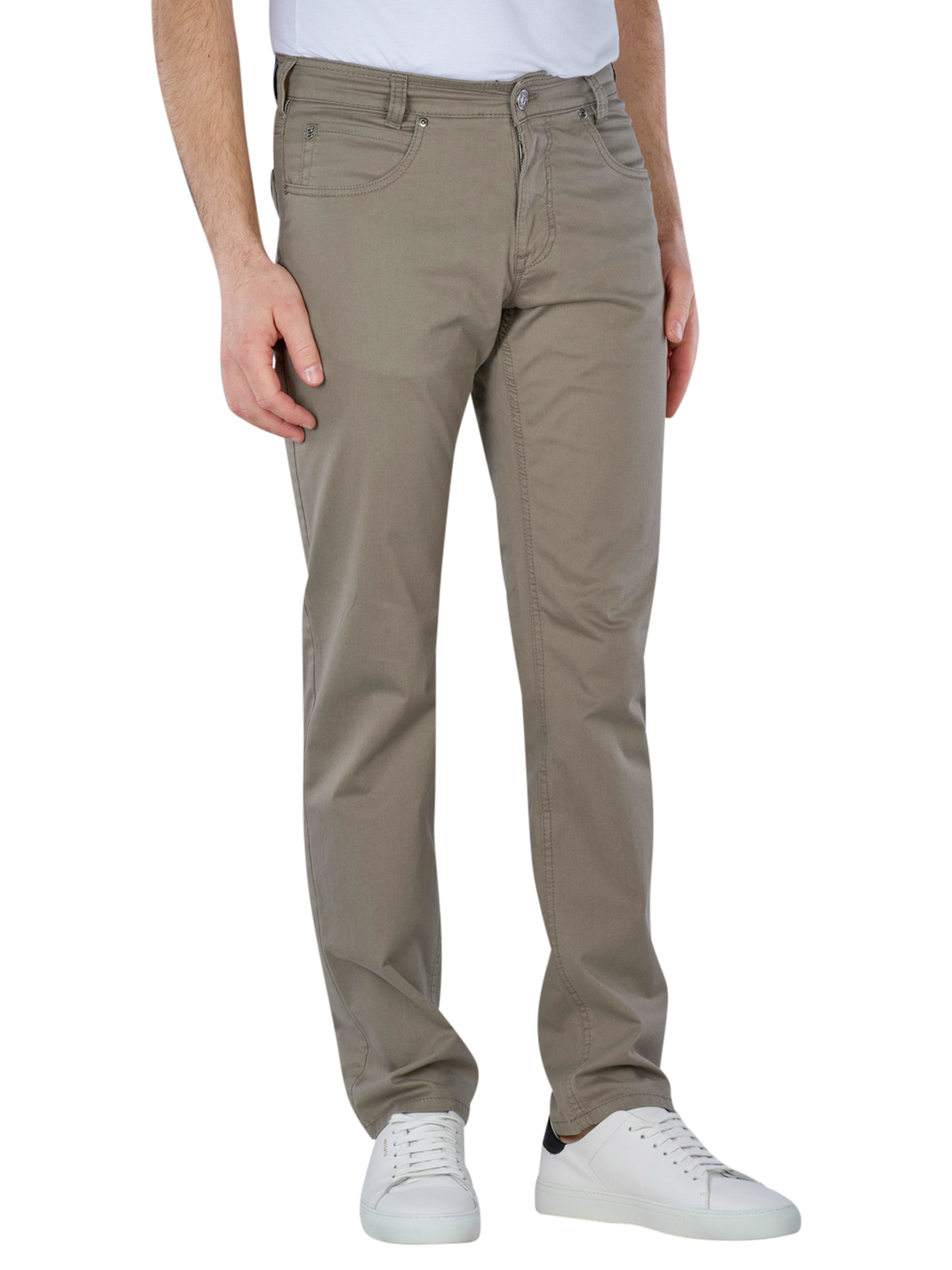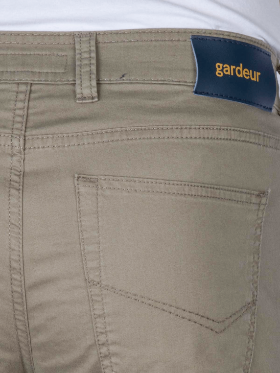 Entdecken Sie die Gardeur Bill-3 5-Pocket Pants in modernem Khaki. Diese Herrenhose überzeugt durch ihren geraden Beinausschnitt und mittlere Bundhöhe, ideal für einen lässigen Look. Der dünne, elastische Stoff aus 97% Baumwolle und 3% Elasthan sorgt für hohen Tragekomfort und optimale Bewegungsfreiheit. Ausgestattet mit einem Reissverschluss und fünf praktischen Taschen, sind die Hosen sowohl funktional als auch stilvoll. Perfekt für jeden Anlass Pflegeleicht bei 40°C im Schonwaschgang!