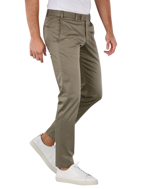 Die Hiltl Tilo Business Chino ist eine olivfarbene Hose speziell für Männer, die modernes Design mit Komfort verbindet. Mit ihrer Slim Fit Passform und dem geraden Beinausschnitt bietet sie einen eleganten Look. Der mittlere Bund sowie der Stretchanteil sorgen für angenehmen Tragekomfort. Gefertigt aus 97% Baumwolle und 3% Elasthan, ist sie robust und pflegeleicht. Ein praktischer Reissverschluss erleichtert das An- und Ausziehen. Ideal für den Schonwaschgang bei 30°C.