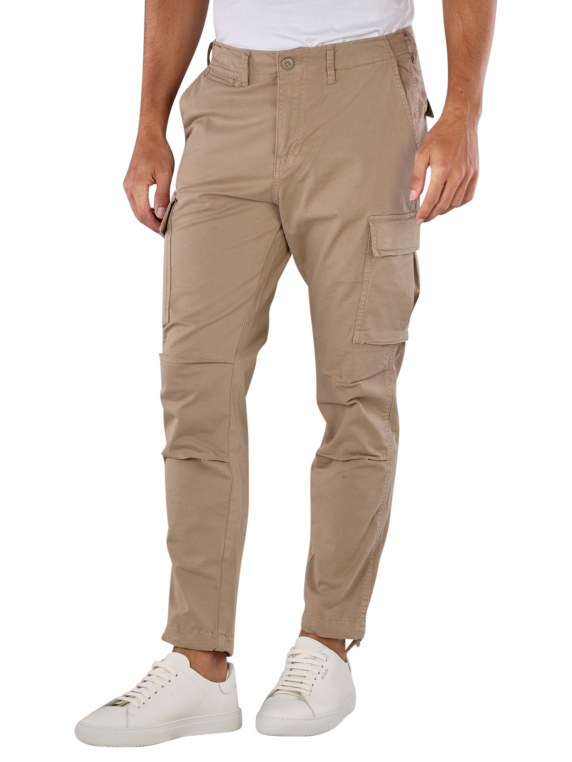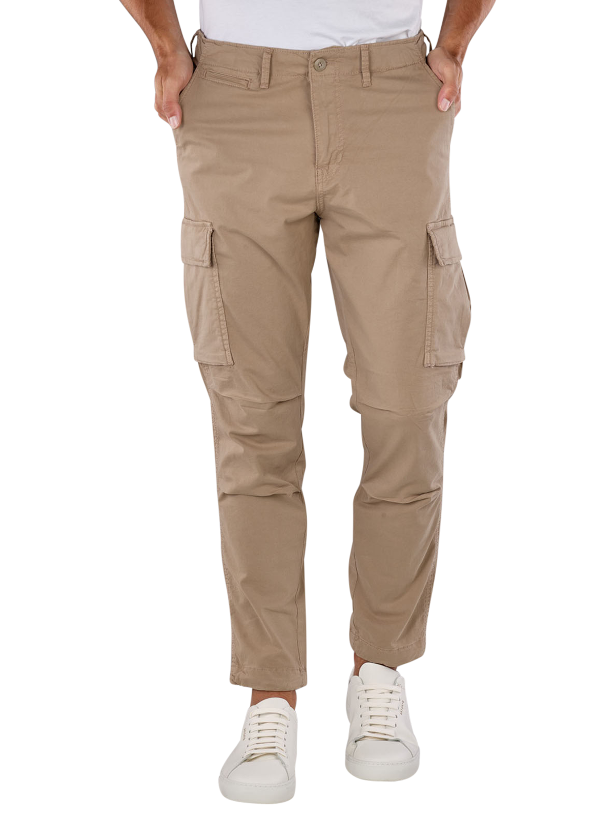 Diese Jack & Jones Ace Trucker Cargo Pants sind stilvolle Herren-Hosen in einer klassischen beigen Farbe. Sie bieten eine schmale Passform mit hohem Bund und eng anliegenden Beinausschnitten. Die Hose besteht aus dünnem Stoff mit einem Stretchanteil, was für zusätzlichen Tragekomfort sorgt. Aus 97% Baumwolle und 3% Elasthan gefertigt, ist sie ideal für den Alltag. Ein Reissverschluss sorgt für einfaches An- und Ausziehen. Geeignet für den Normalwaschgang bei 40°C.