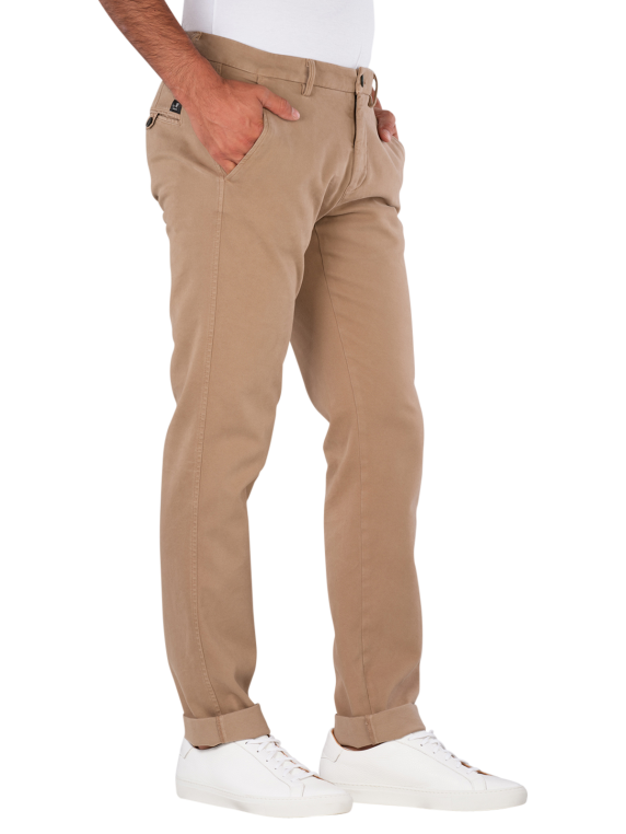 Die Mason's Torino Chino Slim Fit Jersey in Beige bietet eine moderne Slim Fit Passform mit mittlerer Bundhöhe. Diese Chinohose ist ideal für legere und formelle Anlässe. Der Reissverschluss sorgt für einen sicheren Sitz, während der Stretchanteil Bewegungsfreiheit gewährleistet. Pflegeleicht bei 30°C im Normalwaschgang, ist sie eine praktische Wahl für den Alltag. Kombinierbar mit verschiedenen Oberteilen, ergänzt sie jede Garderobe.
