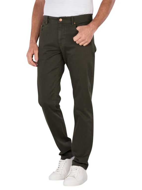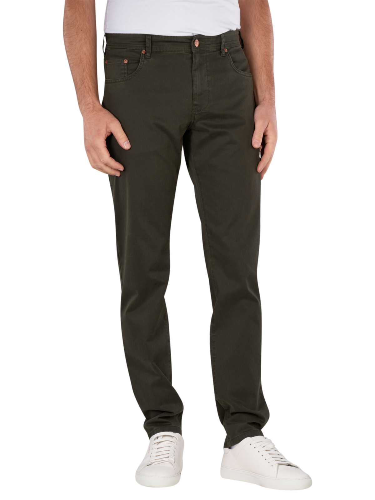 Die Meyer M5 5-Pocket Jeans Slim Fit in Dunkelgrün bietet einen engen Beinausschnitt und eine mittlere Bundhöhe. Sie sind aus einem standarddicken Stoff mit Stretchanteil gefertigt, was für Bewegungsfreiheit sorgt. Diese Jeans sind für Männer konzipiert und verfügen über einen praktischen Reissverschluss. Sie lassen sich bei 40°C im Normalwaschgang reinigen und sind aus Bio-Baumwolle hergestellt, was umweltfreundlich ist.