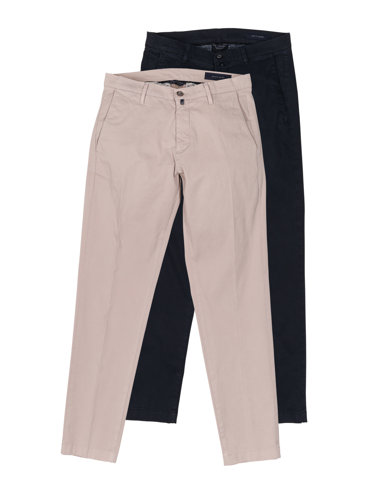 Die Pierre Cardin Colmar Chino Tapered 2-Pack Hosen für Männer bieten einen stilvollen und vielseitigen Look in Khaki und Marine. Mit einem engen bis geraden Beinausschnitt und einer tiefen bis mittleren Bundhöhe überzeugen sie durch ihren bequemen Tapered Fit. Hergestellt aus 97% Baumwolle und 3% Elasthan für optimalen Stretchkomfort, sind diese Five-Pocket-Hosen pflegeleicht und maschinenwaschbar. Ideal für den Alltag und besondere Anlässe, mit Reissverschluss und Standardstoffdicke.