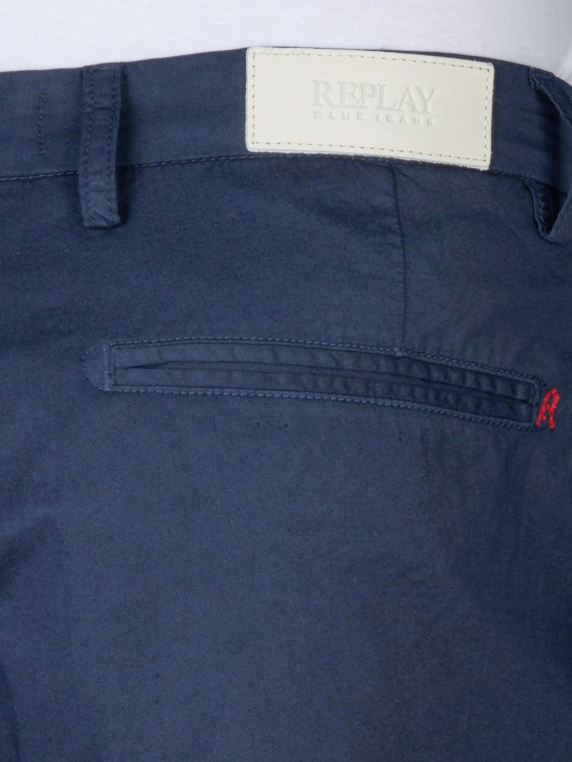 Entdecken Sie die Replay Benni Chino Straight Fit in einem eleganten Dunkelblau. Diese Herrenhose bietet eine gerade Beinform und mittlere Bundhöhe für optimalen Tragekomfort. Der dünne Stoff mit Stretchanteil garantiert Bewegungsfreiheit und Bequemlichkeit. Der praktische Reissverschluss sorgt für einfaches An- und Ausziehen. Ideal für stilbewusste Männer, die eine vielseitige Hose suchen. Pflegeleicht im Schonwaschgang bei 30°C, ist sie ein Must-Have für jede Garderobe.