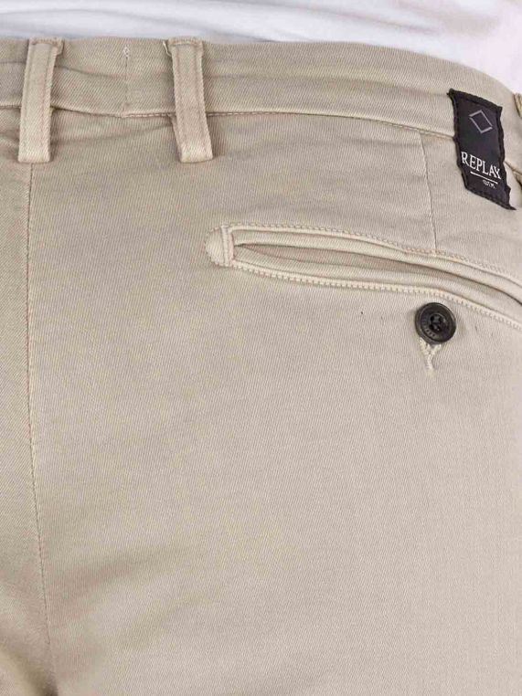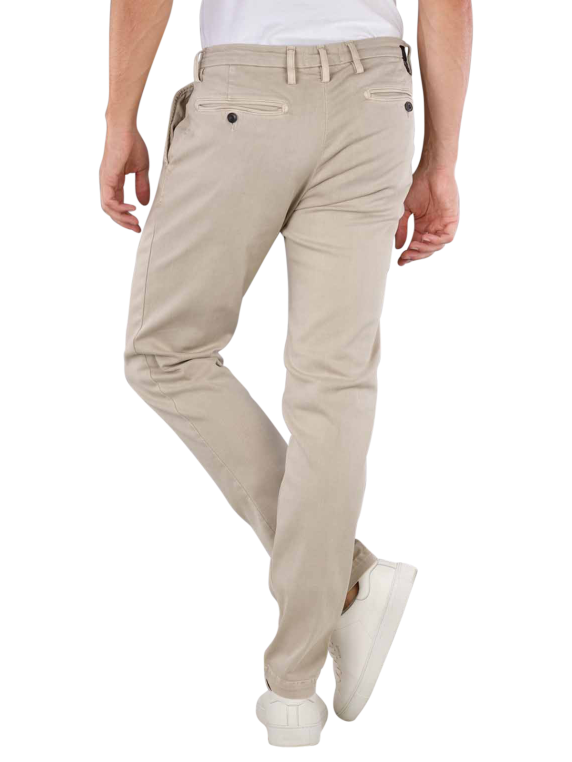 Die Replay Zeumar Chino Pant Hyperflex ist eine Slim Fit Hose für Männer in einem hellen Beige. Sie besticht durch einen engen Beinausschnitt und eine tiefe Bundhöhe. Hergestellt aus 91% Baumwolle, 6% Elastomultiester und 3% Elasthan, bietet sie angenehmen Tragekomfort mit Stretchanteil. Diese Chino-Hose hat einen Reissverschluss und ist bei 30°C im Schonwaschgang waschbar. Perfekt für stilvolle Alltagslooks.