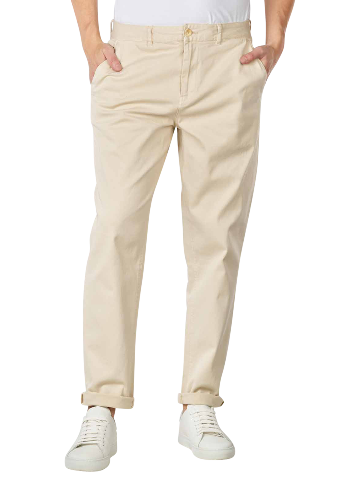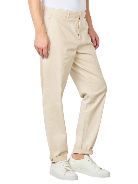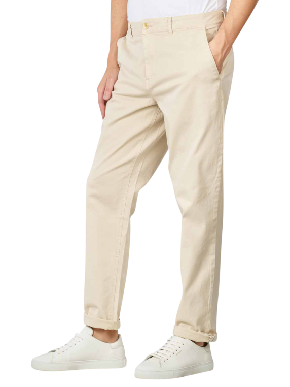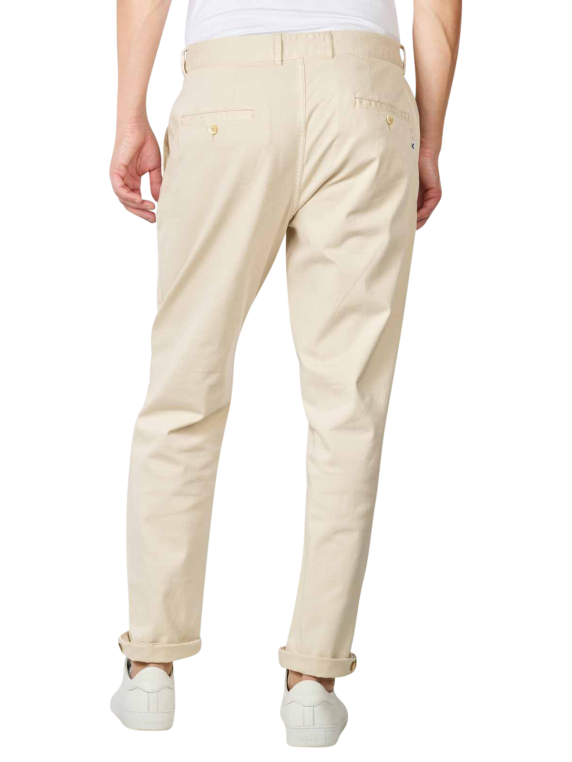 Die Chinohose für Männer verfügt über einen Reissverschluss. In Kombination mit dem Hosenknopf und den Gürtelschlaufen sorgt dieser für einen perfekten Sitz. Der hohe Baumwollanteil macht es möglich, dass die Hose bei niedriger Temperatur im Trockner getrocknet werden kann. Gewaschen werden sollte sie bei 30 Grad im Normalwaschgang. Bügeln bei bis zu 110 Grad ist ebenfalls möglich.
