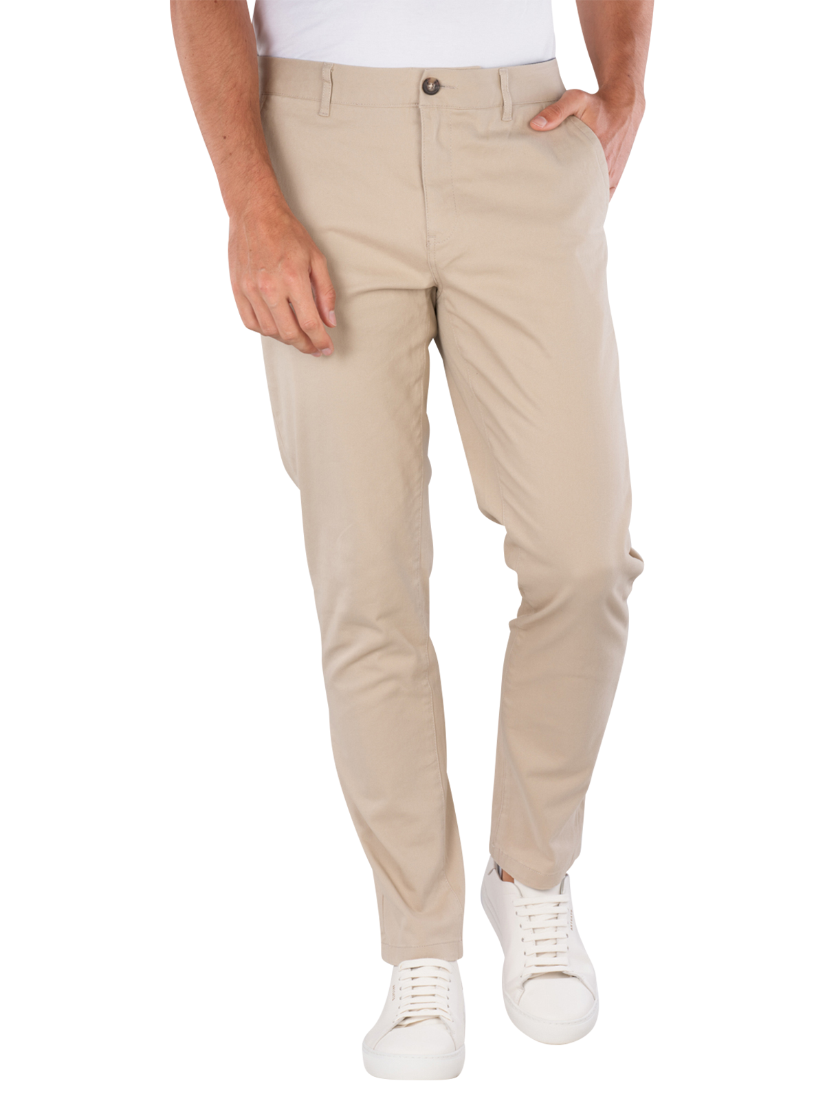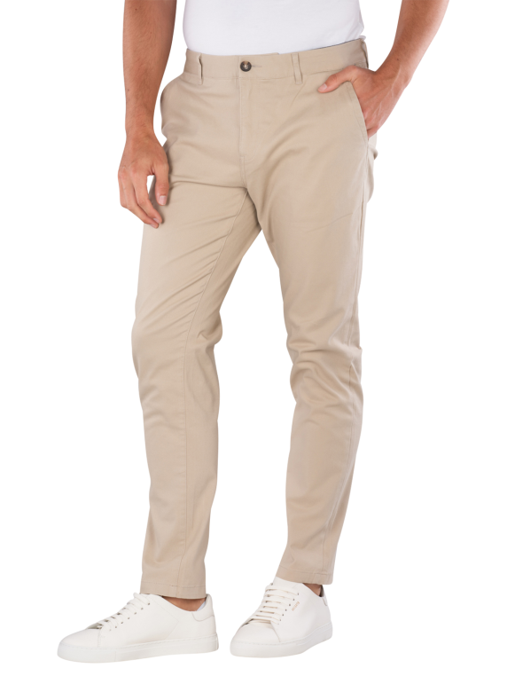 Die Scotch & Soda Mott Chino Super Slim in Beige kombiniert moderne Ästhetik mit Funktionalität. Diese Herrenhose bietet eine enge, gerade Passform und eine mittlere Bundhöhe, ideal für vielseitige Outfits. Der Stretchanteil sorgt für Flexibilität und Bewegungsfreiheit. Hergestellt aus 97 % Baumwolle und 3 % Elasthan, ist sie angenehm im Tragegefühl und pflegeleicht. Mit einem praktischen Reissverschluss und standarddicker Stoffqualität eignet sich diese Chino perfekt für den Alltag und besondere Anlässe.