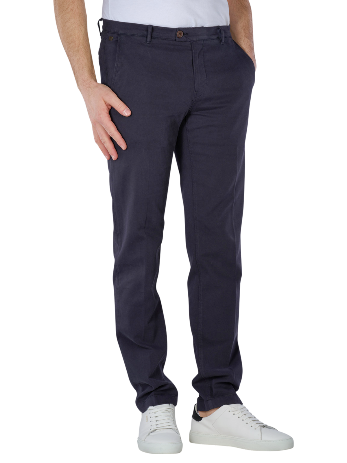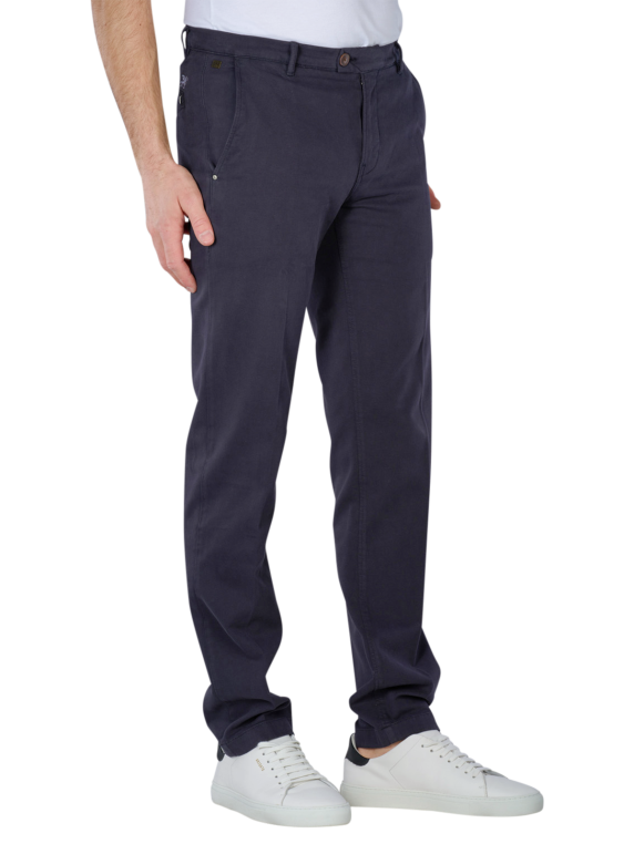 Die Vanguard V9 Chino in Dunkelblau vereint stilvolles Design mit hohem Tragekomfort. Mit ihrem geraden Beinausschnitt und dem mittelhohen Bund bietet sie eine lässige, aber zugleich elegante Passform für modebewusste Männer. Der Stretchanteil sorgt für optimale Bewegungsfreiheit, während der Standard dicke Stoff angenehm zu tragen ist. Diese Chino lässt sich vielseitig kombinieren und eignet sich perfekt für den Alltag. Pflegeleicht bei 30°C im Normalwaschgang ein Must-Have für jede Garderobe!