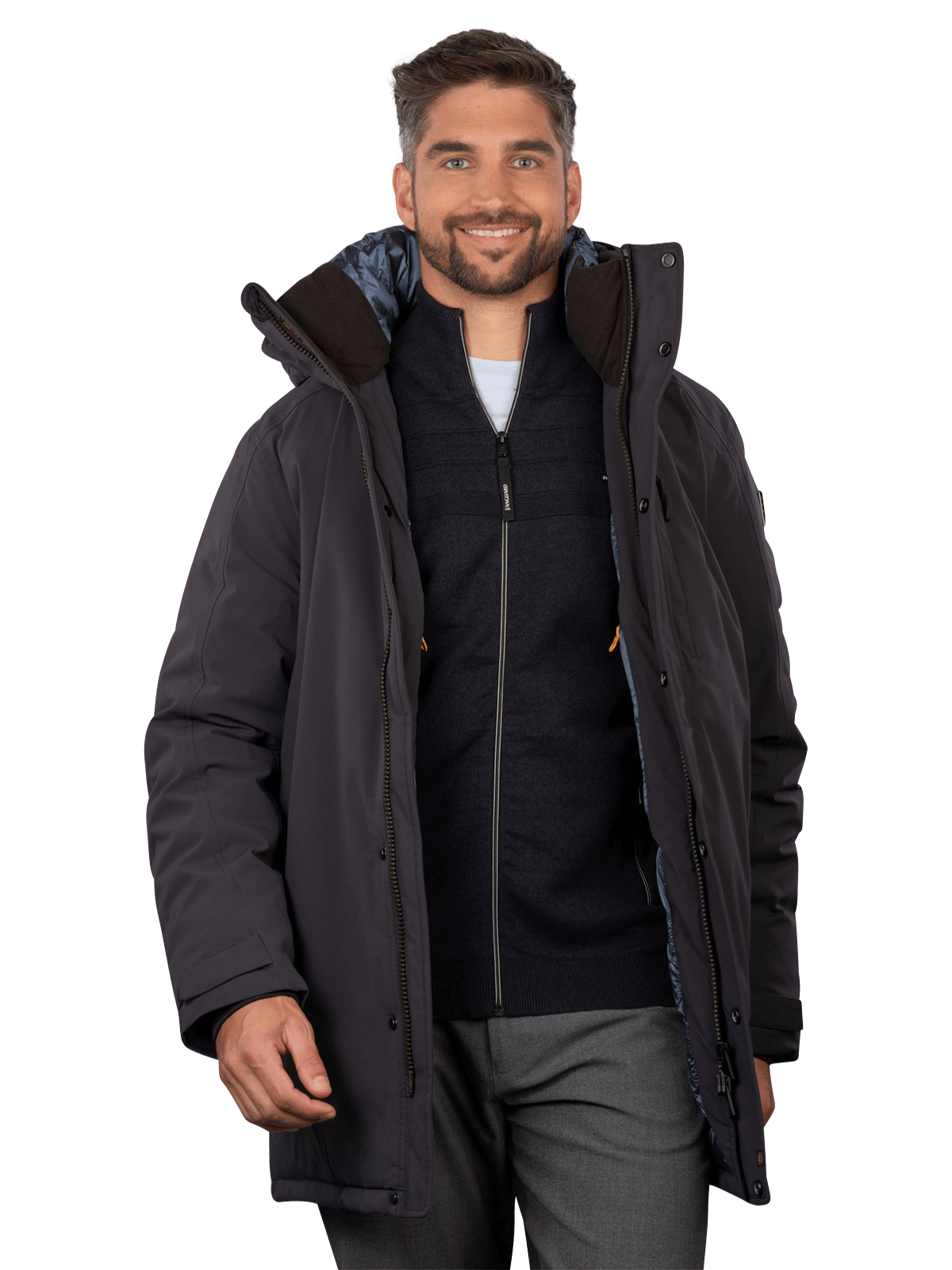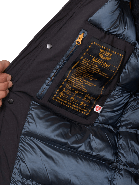 Die PME Legend Nightflight Jacket Long Ripper in Blau-Grafit bietet eine abnehmbare Kapuze und ist für Männer konzipiert. Sie ist aus 100% Polyester gefertigt und verfügt über eine Bionic Finish Eco-Beschichtung, die wasserabweisend wirkt. Diese Jacke eignet sich für verschiedene Wetterbedingungen und bietet durch den Spezialschonwaschgang bei 30°C eine einfache Pflege. Sie kombiniert Funktionalität mit einem modernen Look.