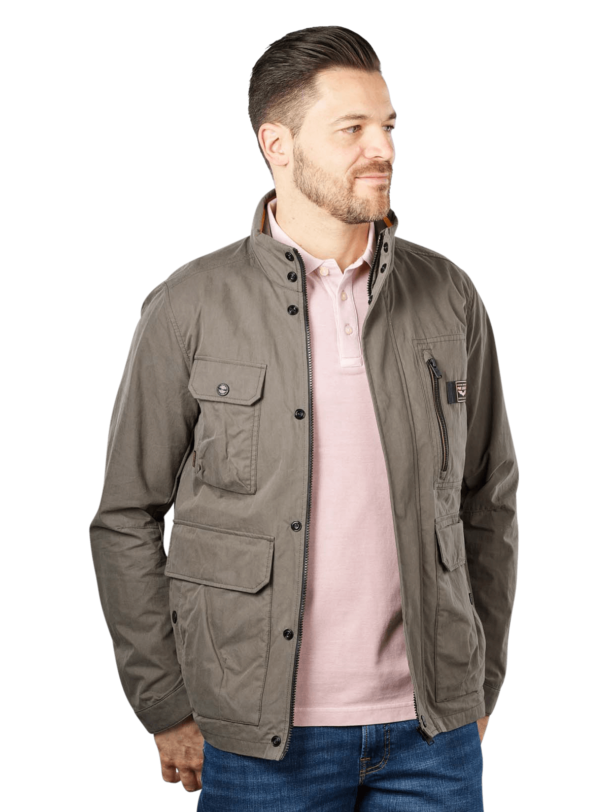 Mit zahlreichen Verstaumöglichkeiten und einem modischen Design begeistert die halblange Herrenjacke von der Marke PME Legend. Das leichte Modell im Farbton Beluga ist mit zwei grossen aufgesetzten Seitentaschen mit Patten, einer aufgesetzten Brust-Pattentasche und einer Brusttasche mit vertikalem Reissverschluss ausgestattet. Zudem hat die Jacke einen kurzen Stehkragen und weitenverstellbare Ärmelabschlüsse. Das Material setzt sich aus 68 % Baumwolle und 32 % Nylon zusammen.
