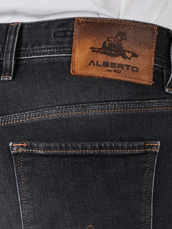 Die nachhaltige Alberto Pipe Lefthand Denim Jeans Slim Fit ist im modischen Five Pocket Stil. Sie ist in den Passformen Slim und Straight Fit geschnitten. Der Bund ist mittelhoch. Der Oberschenkel und der Beinausschnitt sind gerade. Das Material der Jeans besteht zu 94% aus Baumwolle, zu 5% aus T400 Elastomultiester und zu 1% aus Elasthan.